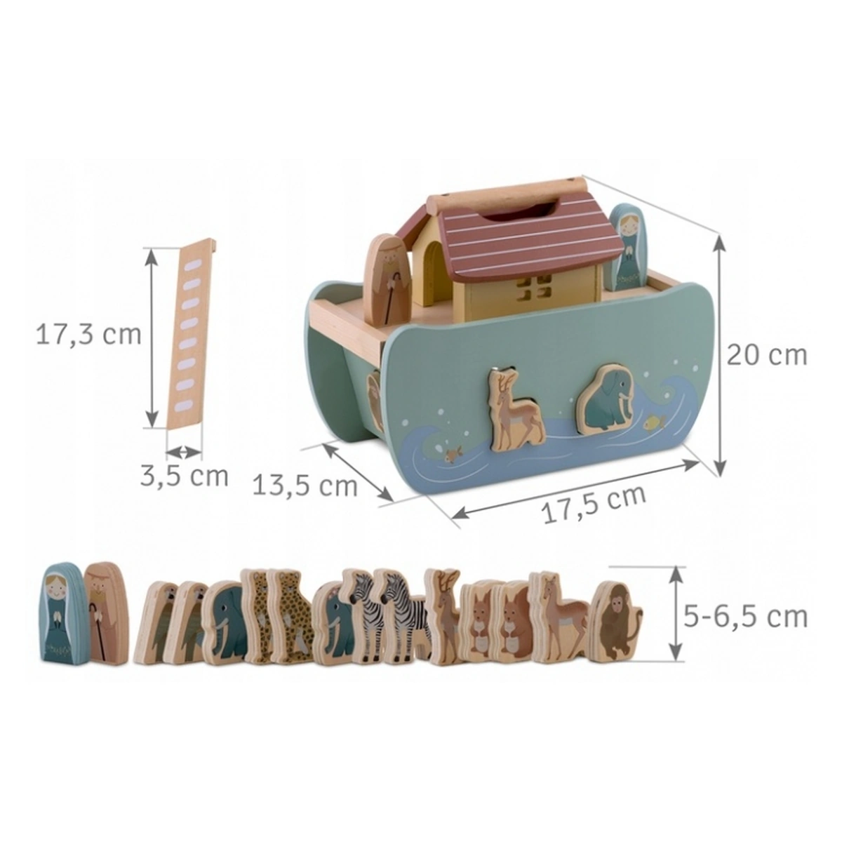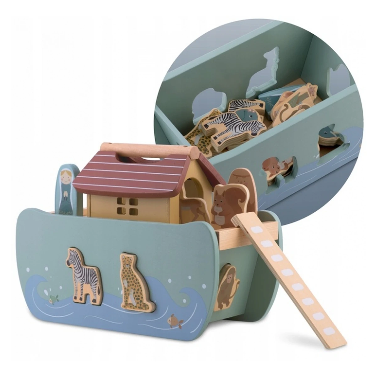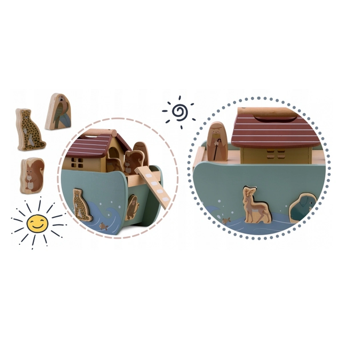 Nukido Jucarie educativa Arca lui Noe din lemn cu animalute, 17.5 x 13.5 x 20 cm, Nukido