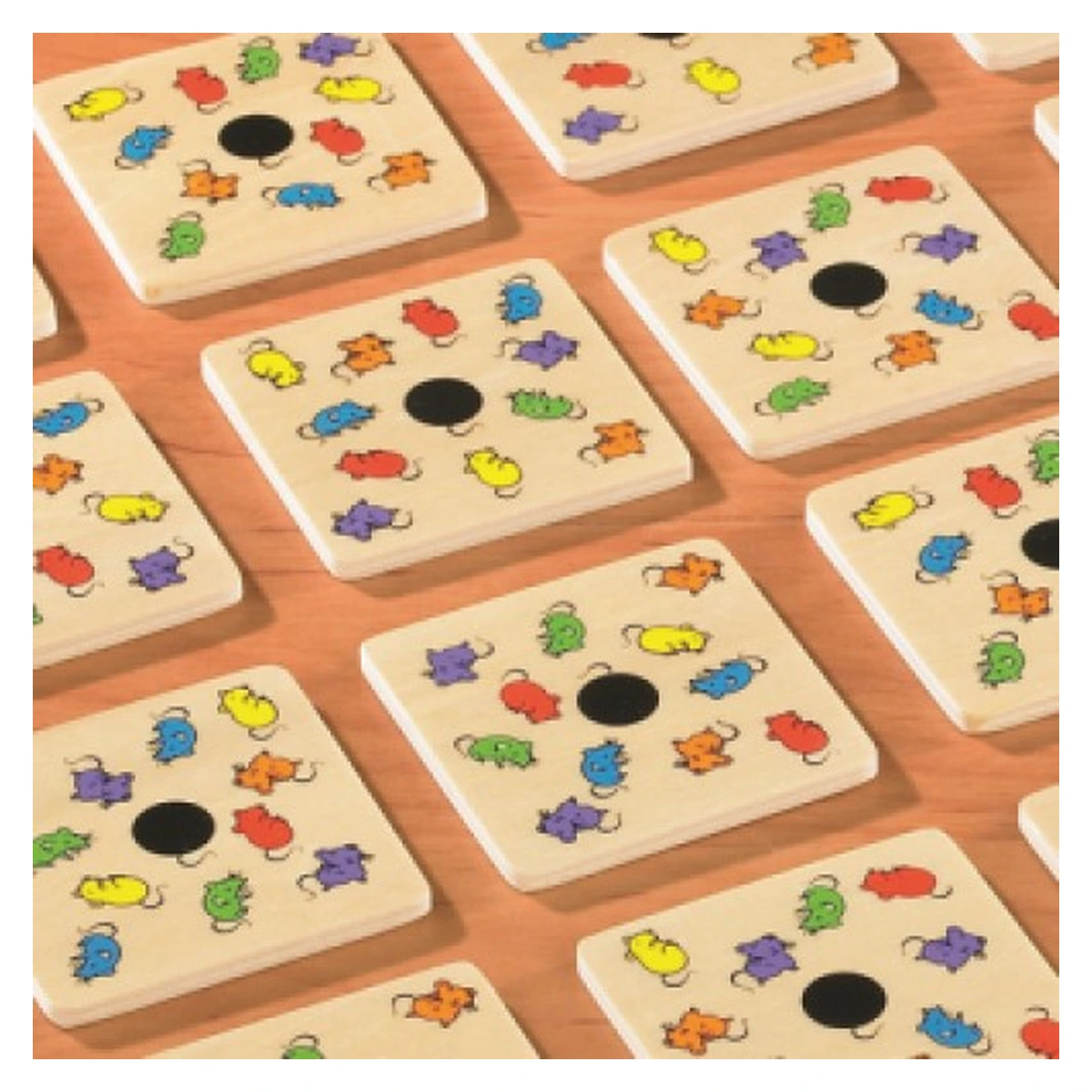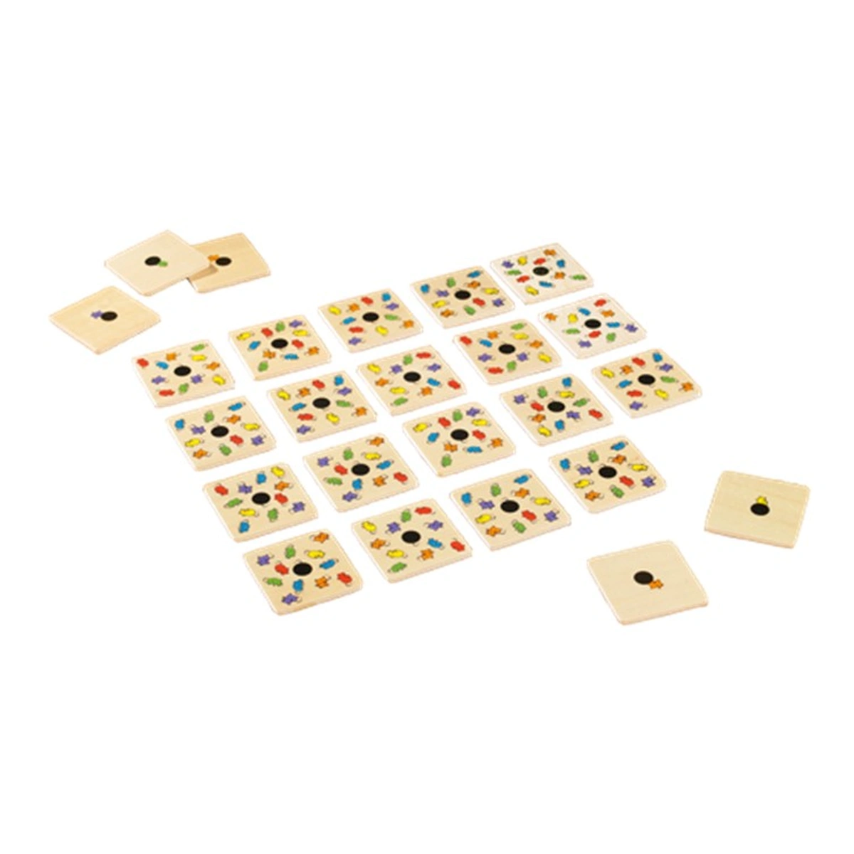 • 24 de carduri din lemn cu dublă față (50 x 50 x 4 mm)