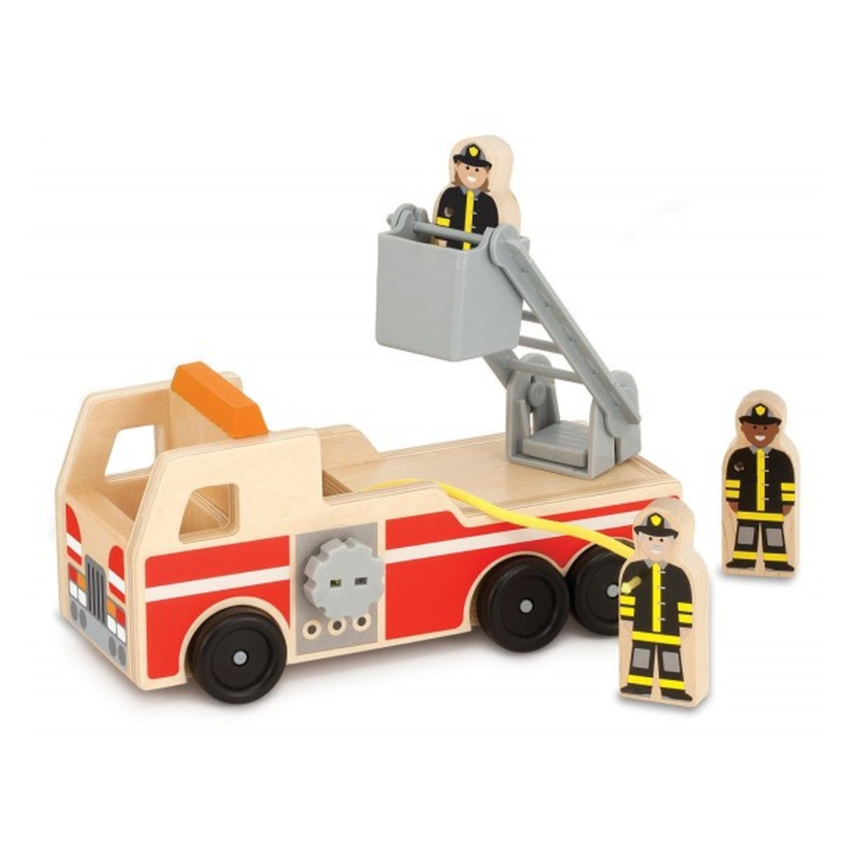 Construit speciat sa-ti "aprinda" imaginatia, acest set incantator contine o masinuta de pompieri functionala (platforma poate fi ridicata si furtunul poate fi rulat sau derulat) si 3 figurine din lemn.
