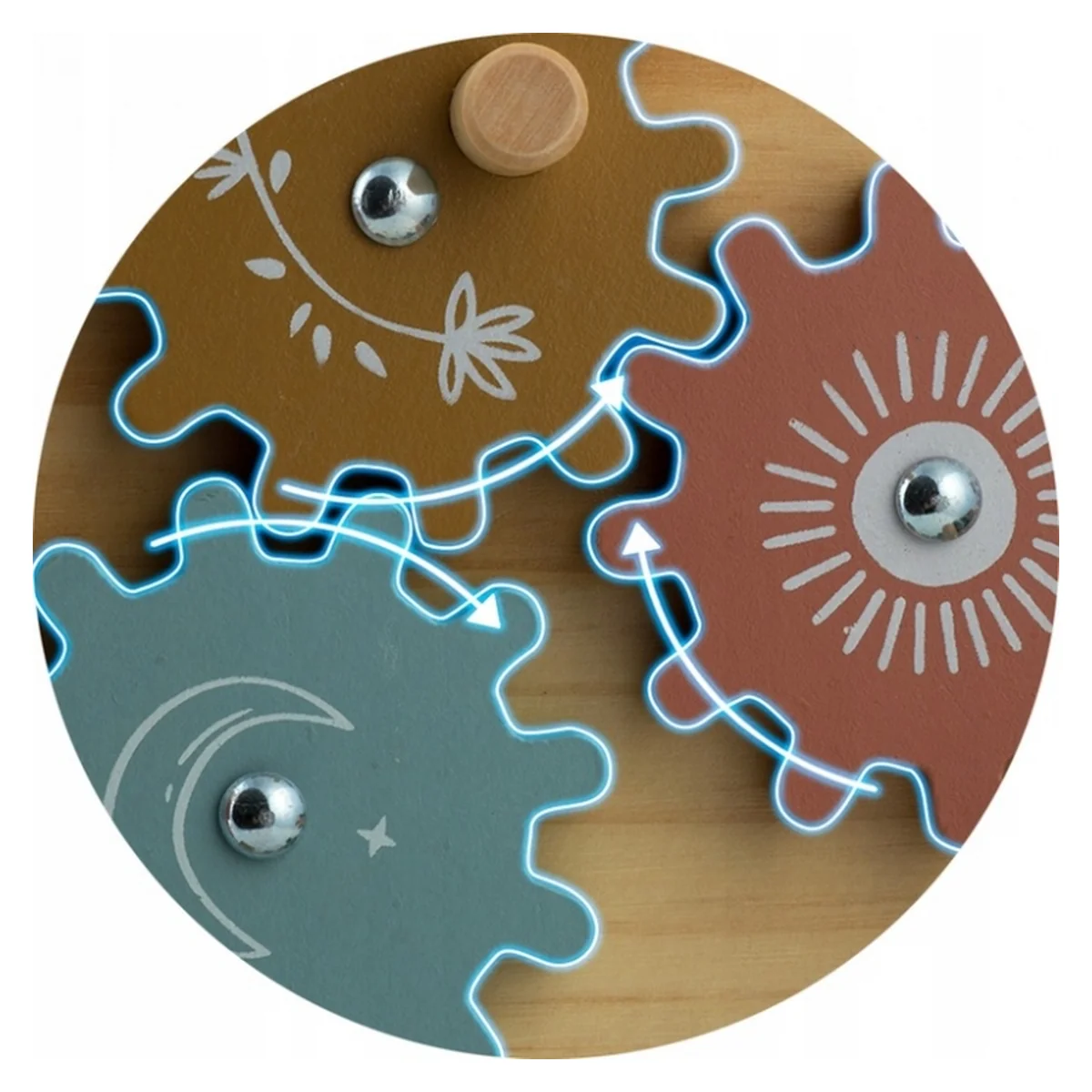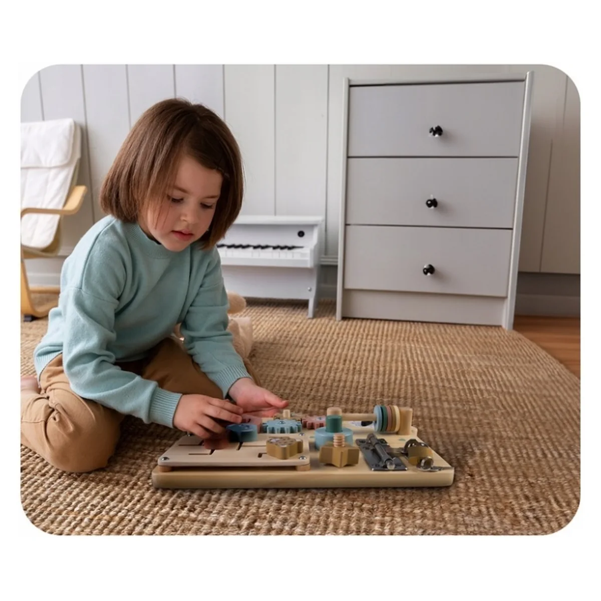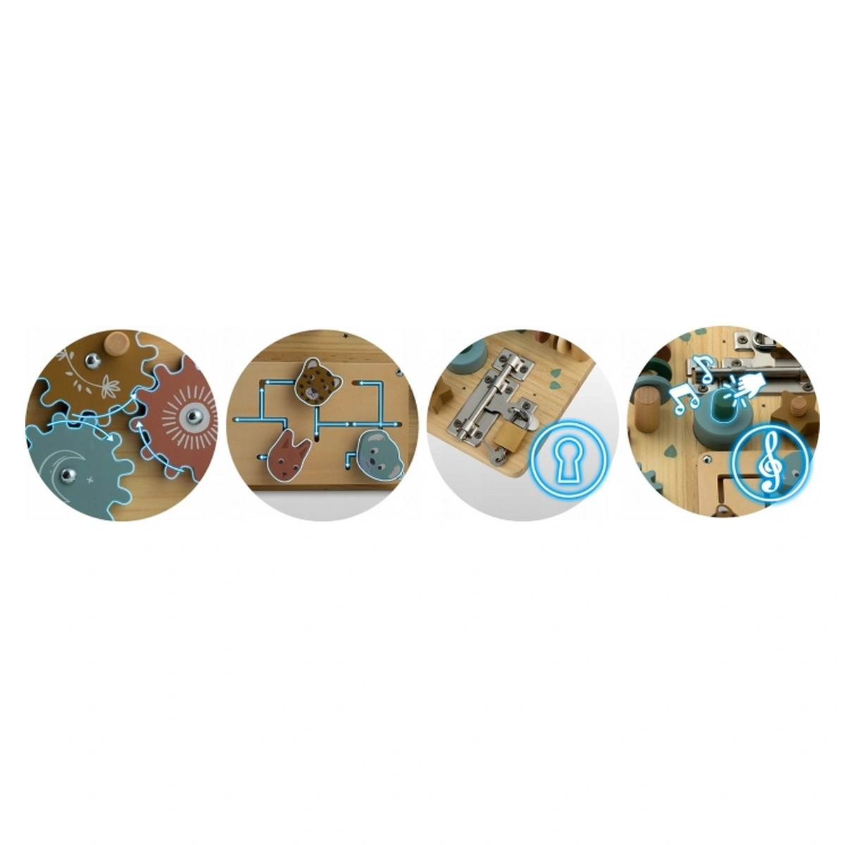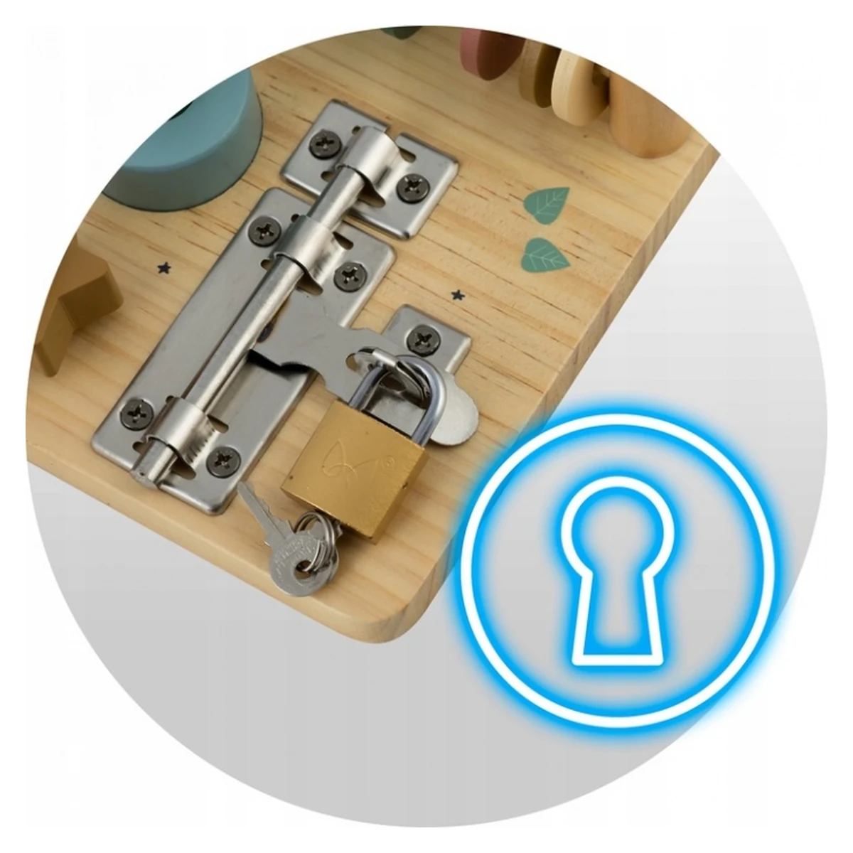 • Dezvoltarea abilitatilor motorii: echipata cu o varietate de activitati, cum ar fi incuietori, roti dintate si butoane, placa sprijina dezvoltarea abilitatilor motorii fine.