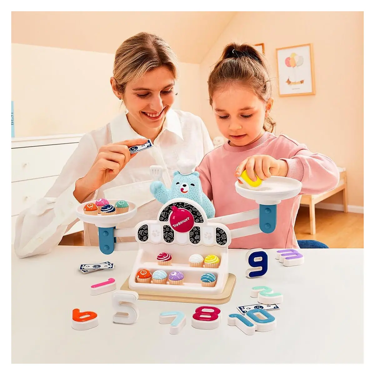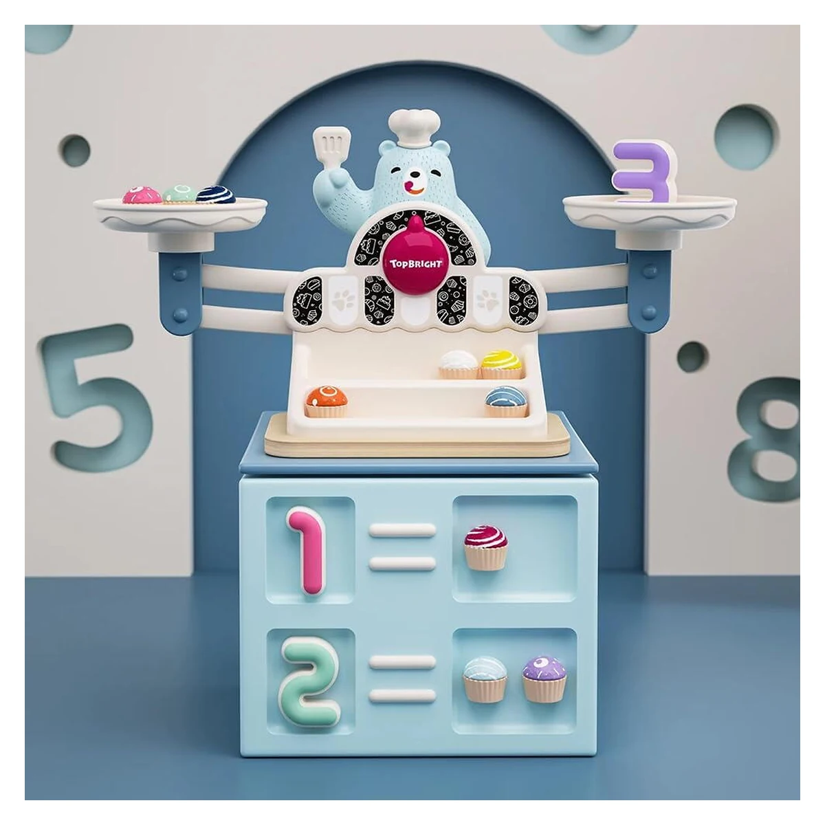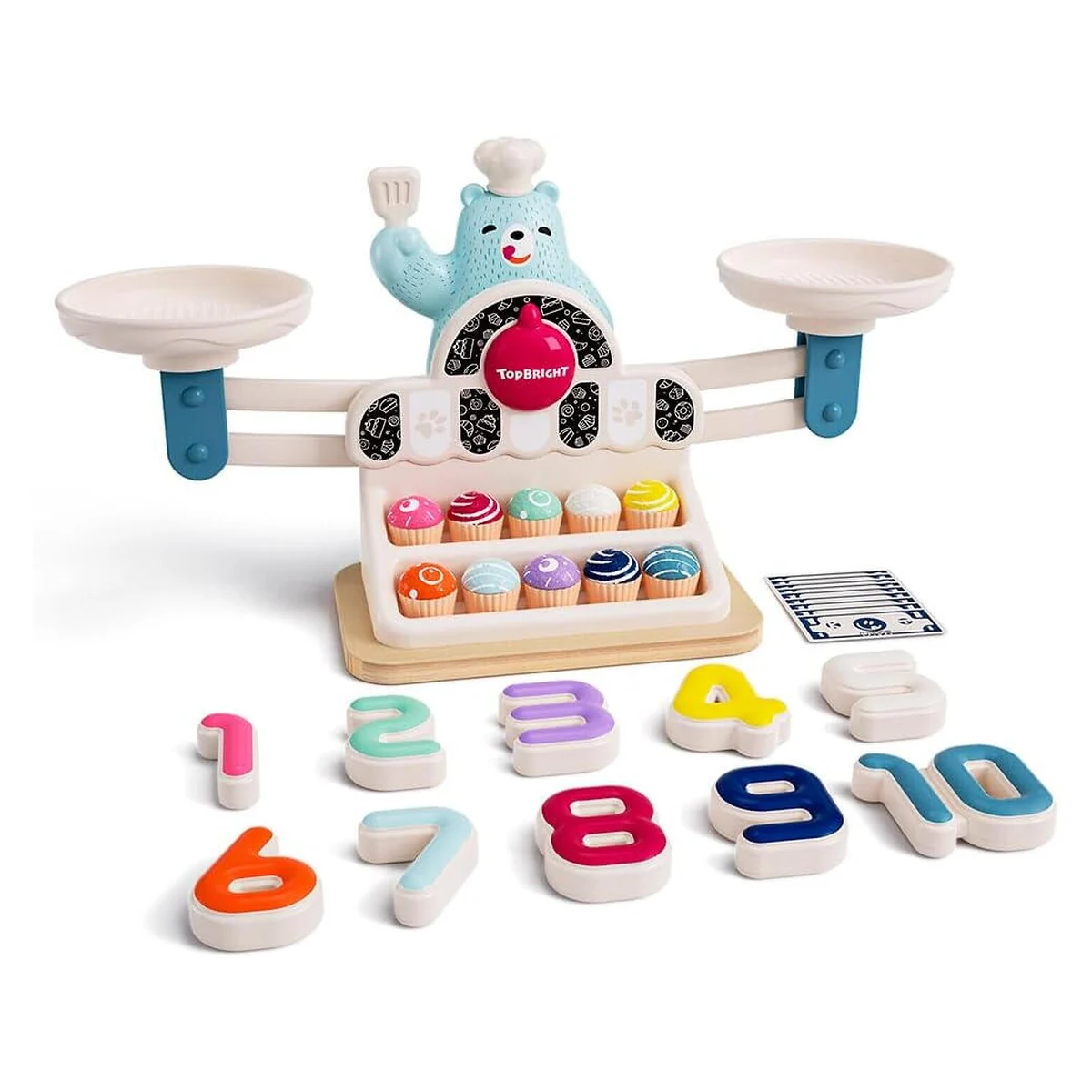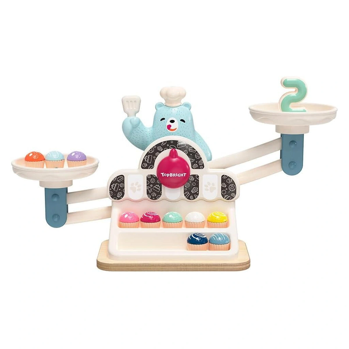 Balanta Yummy a ursuletului Topbright este un joc educativ interactiv care ii ajuta pe copii sa descopere matematica intr-un mod distractiv. Prin joaca, cei mici invata notiuni de numarare, comparare si echilibru.