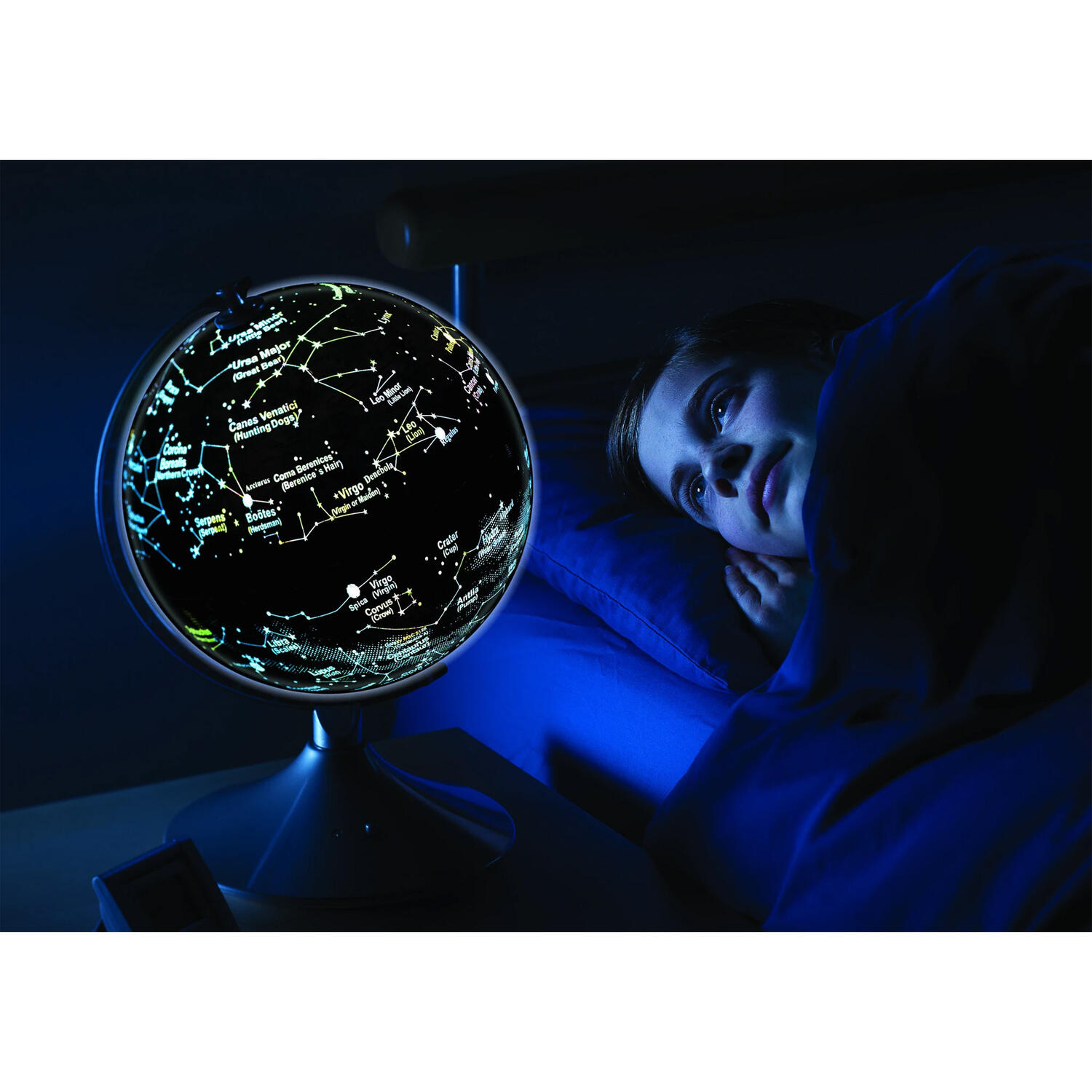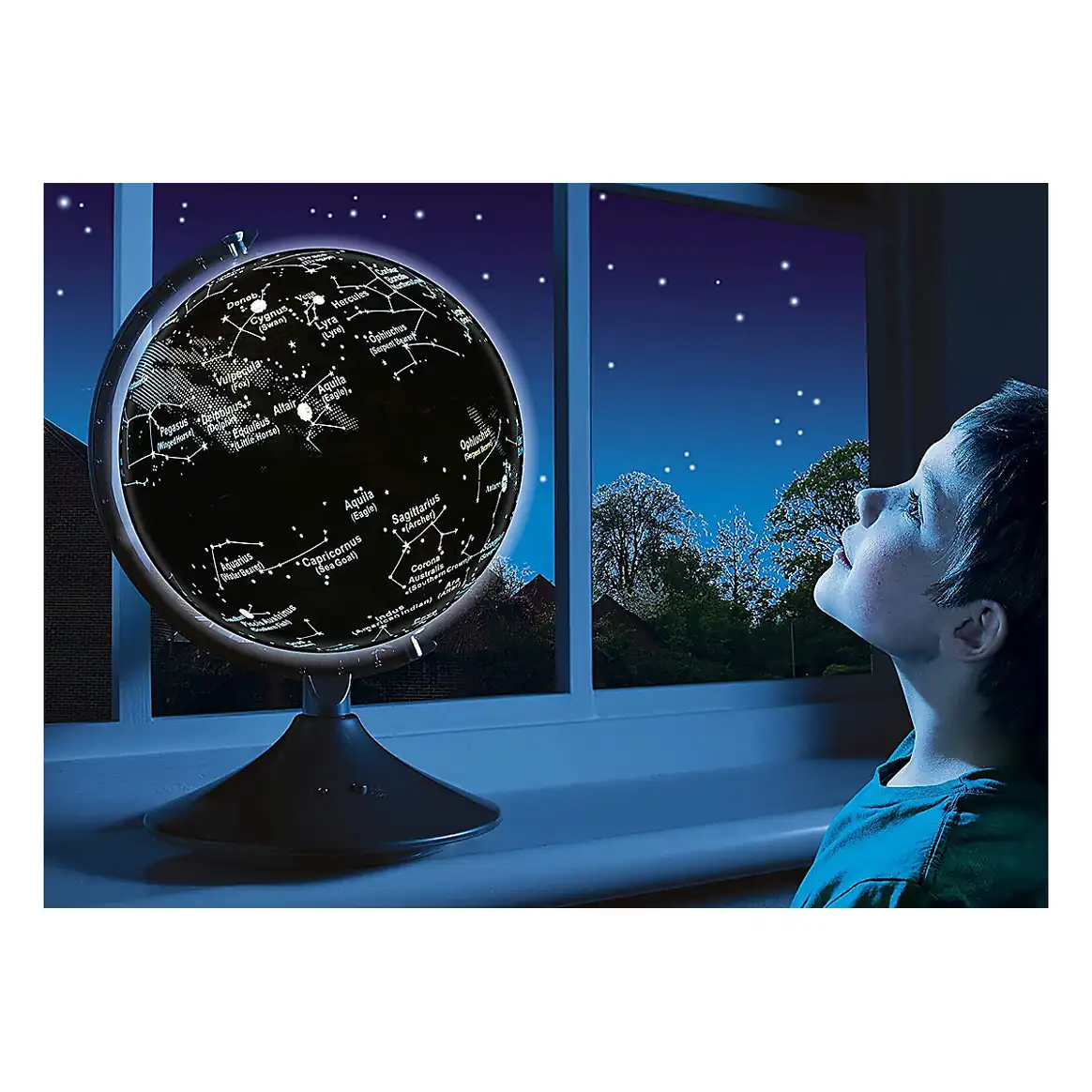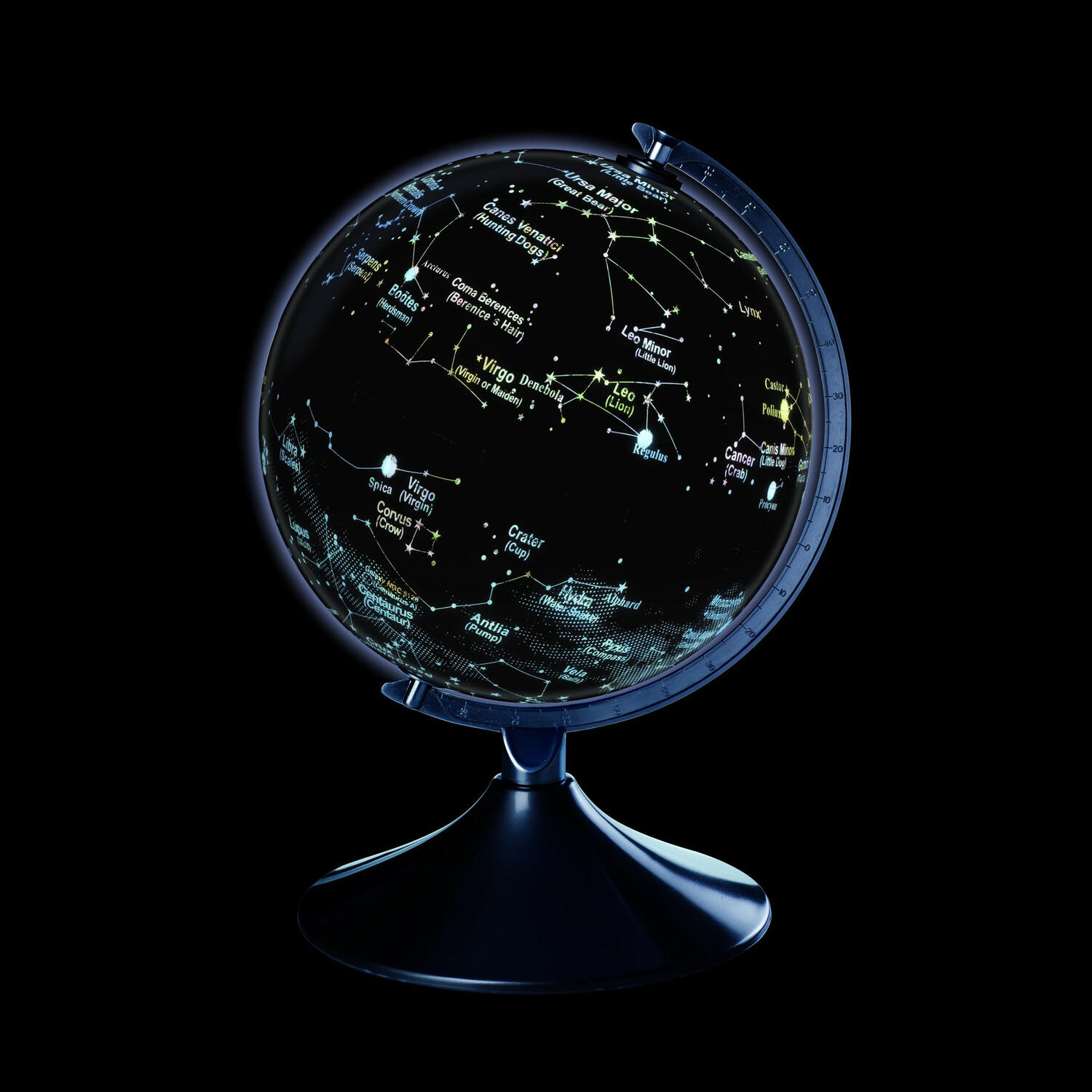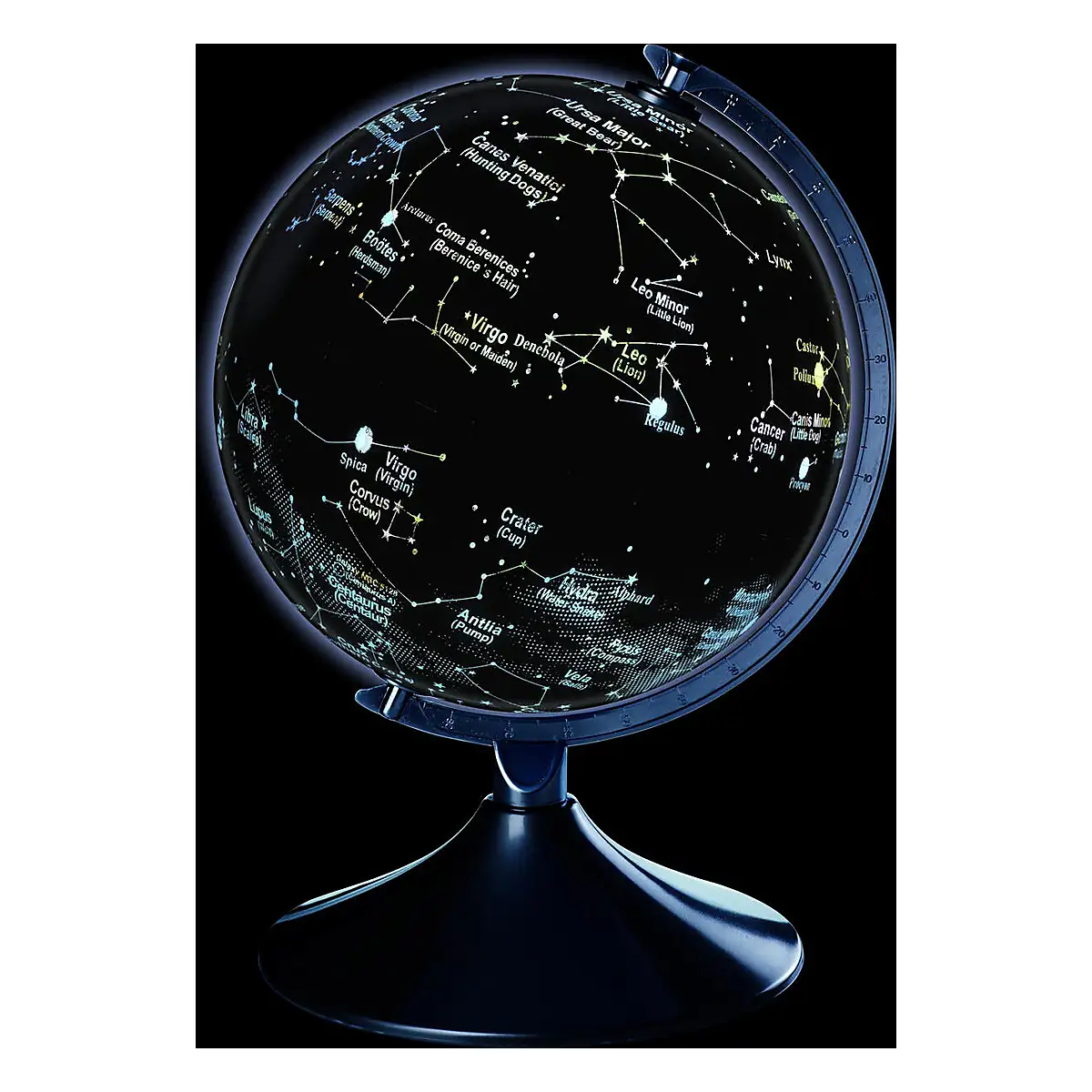 - pe timp de noapte, globul ne prezinta constelatiile cu numele lor in latina si engleza