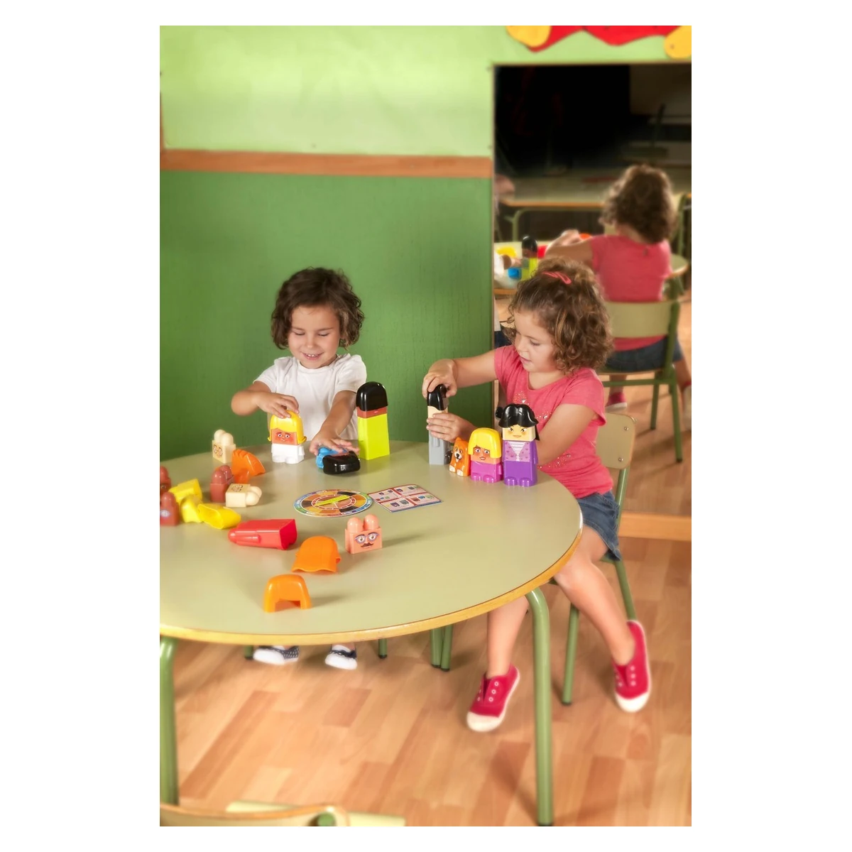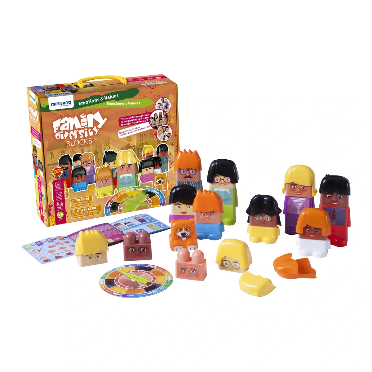 Joc educativ cu piese interschimbabile. Invarte de ruleta pentru a construi diferite tipuri de familii.