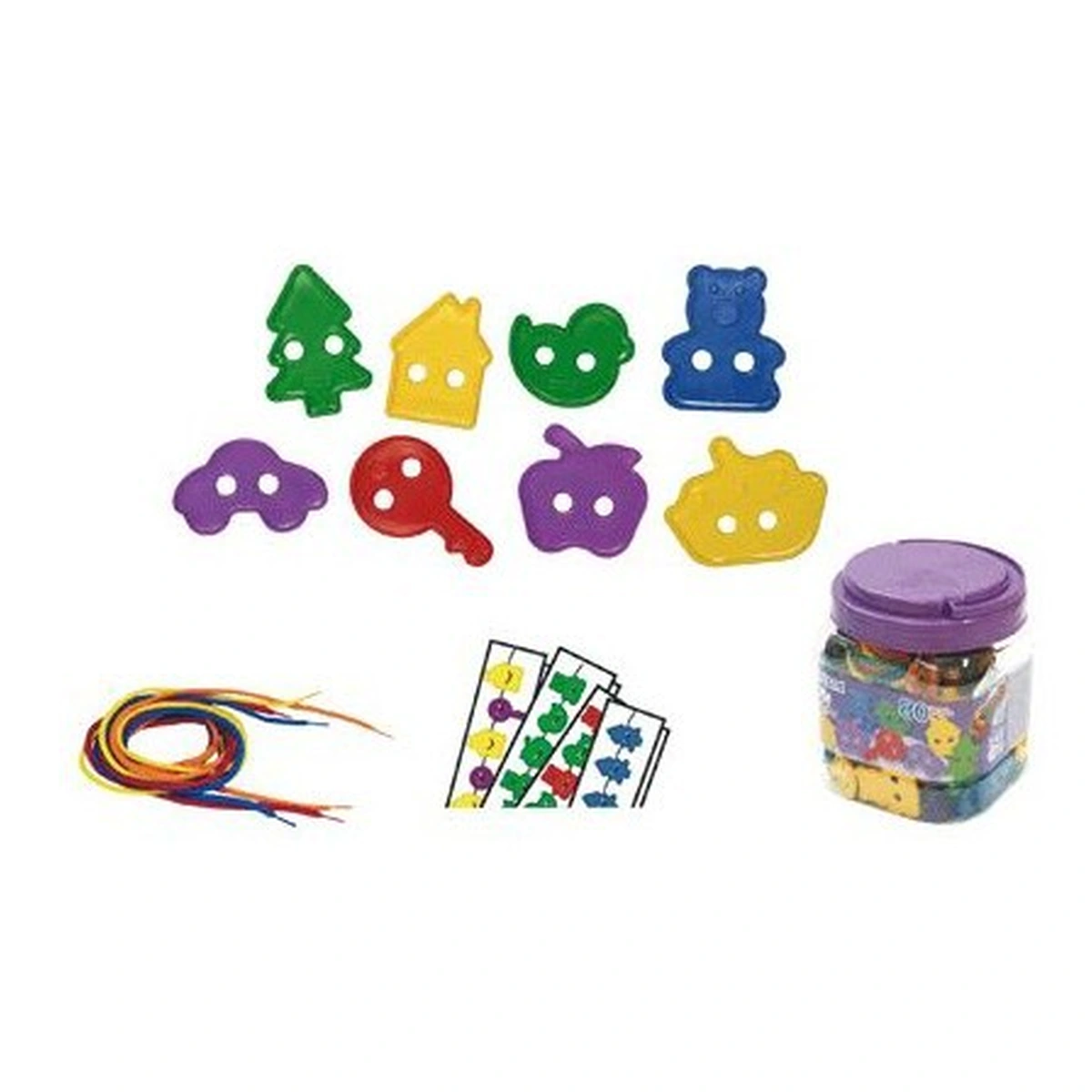 Setul contine:80 de figurine din plastic rezistent in 8 modele si culori diferite,10 snururi de cate 1 m lungime cu capetele imbracate in plasticcarduri cu activitati.