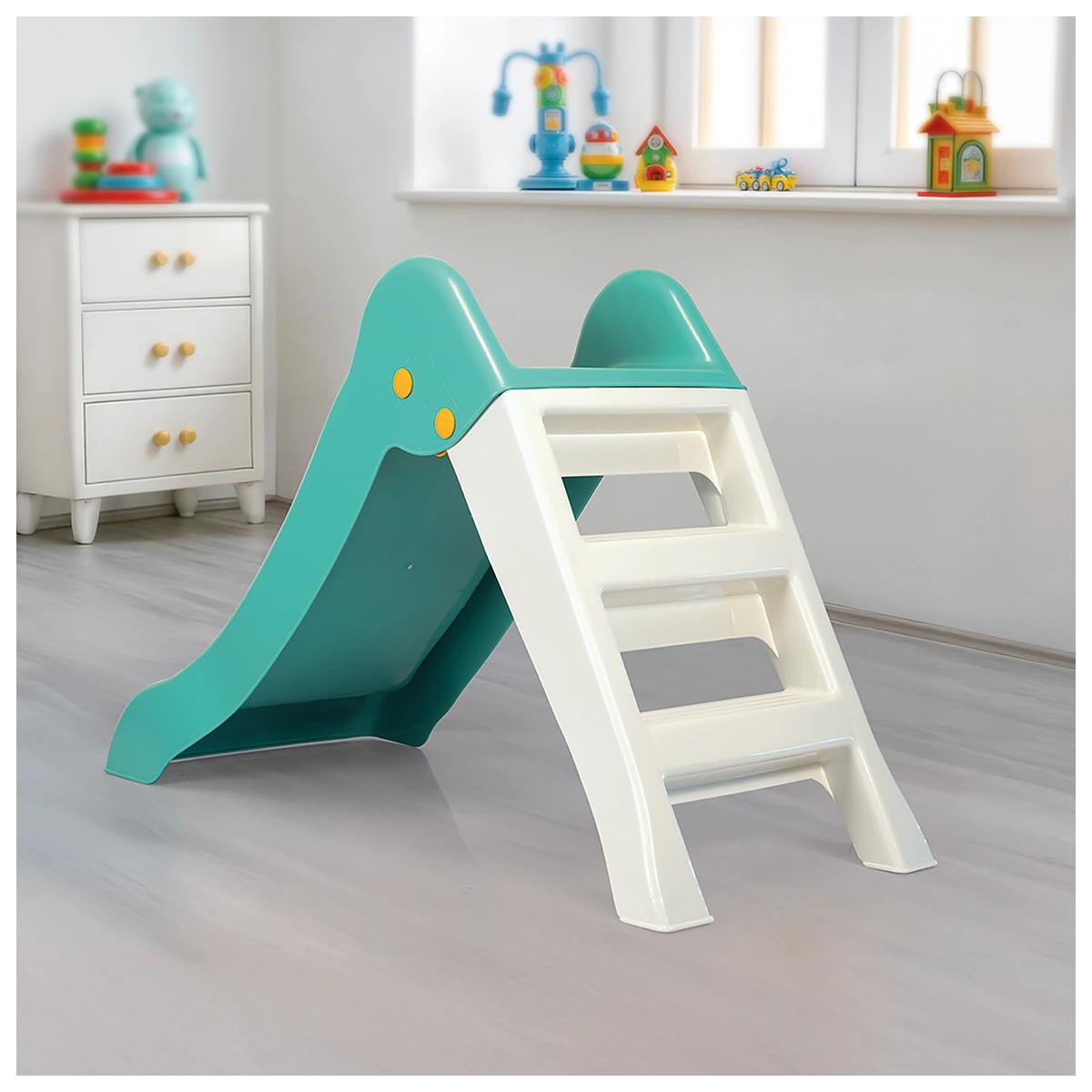 Acest tobogan colorat, cu un design atractiv si finisaj lucios, este perfect pentru joaca celor mici. Fabricat din plastic rezistent, ofera siguranta si stabilitate, fiind ideal pentru utilizare in interior sau exterior. Prevazut cu o scara confortabila si trepte antiderapante, permite accesul usor al copiilor.