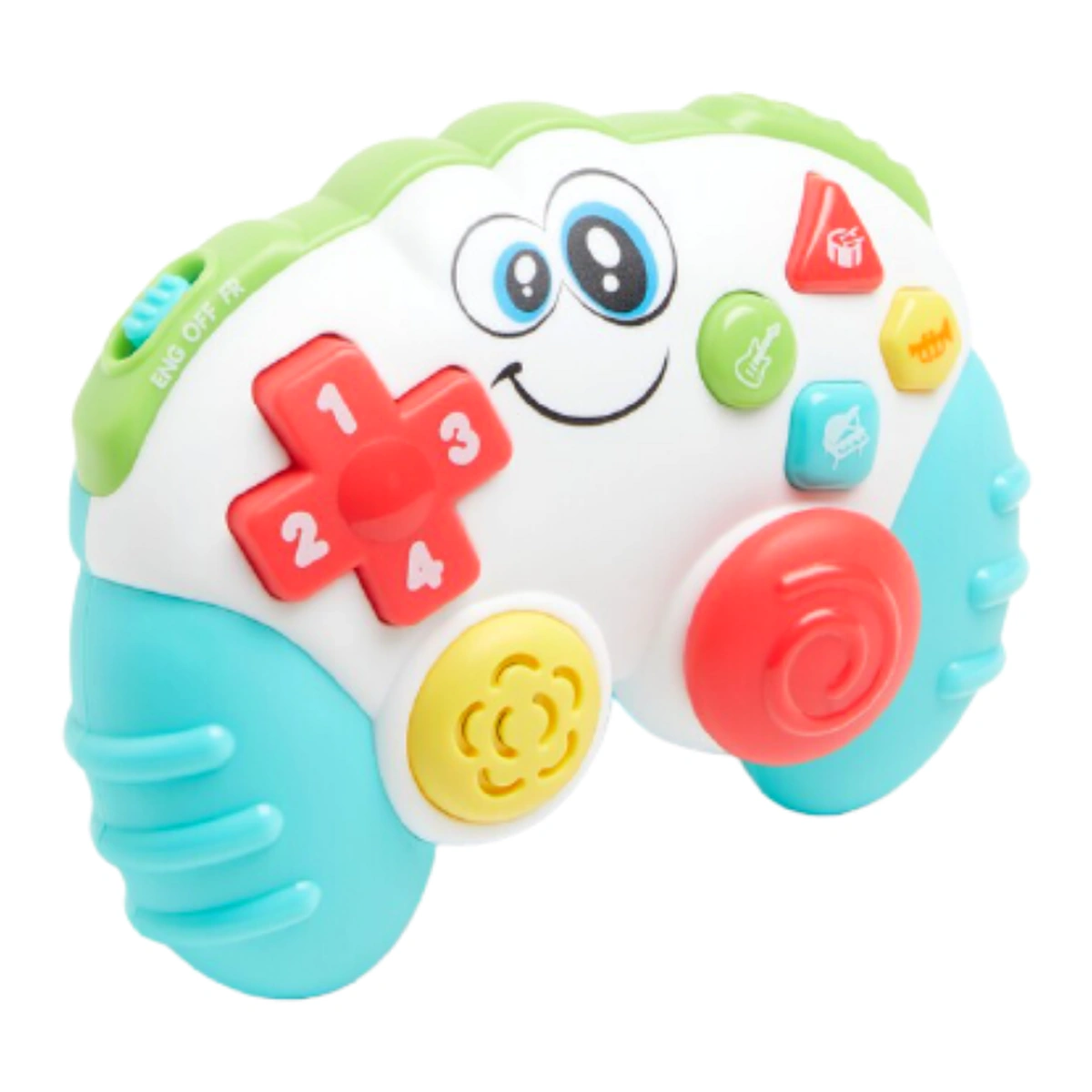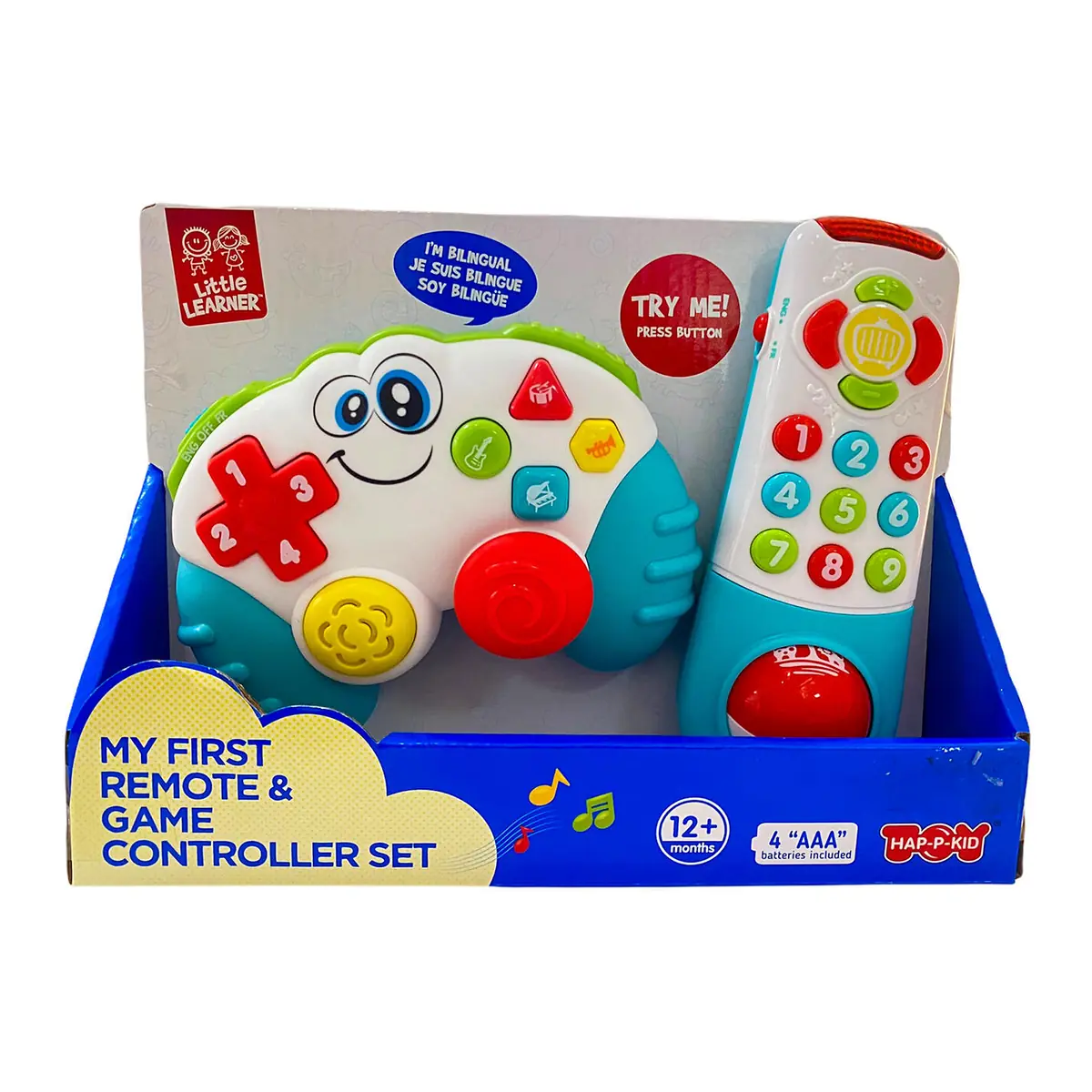 Un set interactiv ce va contribui la dezvoltarea multisenzoriala a copiilor inca de la o varsta frageda. Telecomanda si consola emit sunete amuzante si lumini ce vor atrage cu siguranta atentia celor mici. Apasand pe butoanele telecomenzii si ale consolei copiii vor descoperi numerele, notiuni precum sus, jos, stanga, dreapta si sunete vesele. Butonul rotund verde pentru "schimbarea canalelor" emite sunete din natura si sunete specifice sportului. Consola este prevazuta cu butoane pentru selectarea sunetelor, joystick si butoane pentru alegerea directiei. Prevazute cu buton pentru alegerea limbii (engleza sau spaniola). Confectionata din plastic rezistent. Necesita 4 baterii tip AAA (incluse). Dimensiune ambalaj: 24.1 x 6.3 x 18 cm.