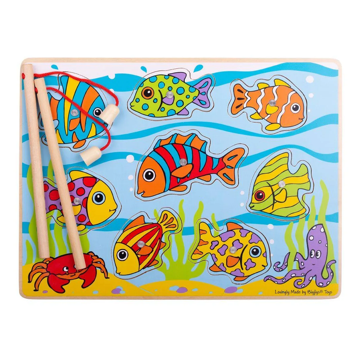 Puzzle-ul magnetic ofera copilului tau senzatia unui acvariu impresionant. El va putea pescui pestisorii de pe baza de lemn cu ajutorul unei undite. Jocul necesita o mare concentrare deoarece pestisorii vor trebui sa fie pusi inapoi la locul lor. Pe langa indemanare, copilul isi va imbunatati si cunostintele, el fiind nevoit sa recunoasca fiecare animal acvatic pescuit.