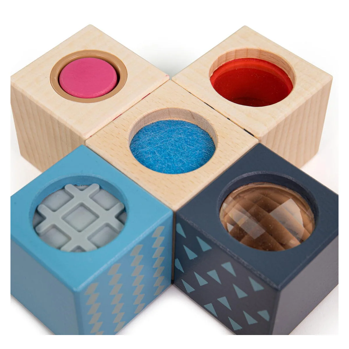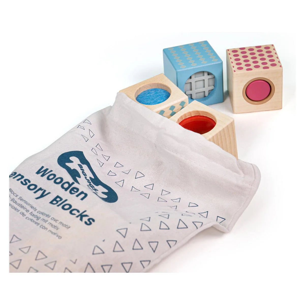 BIGJIGS Toys Set 8 cuburi senzoriale din lemn