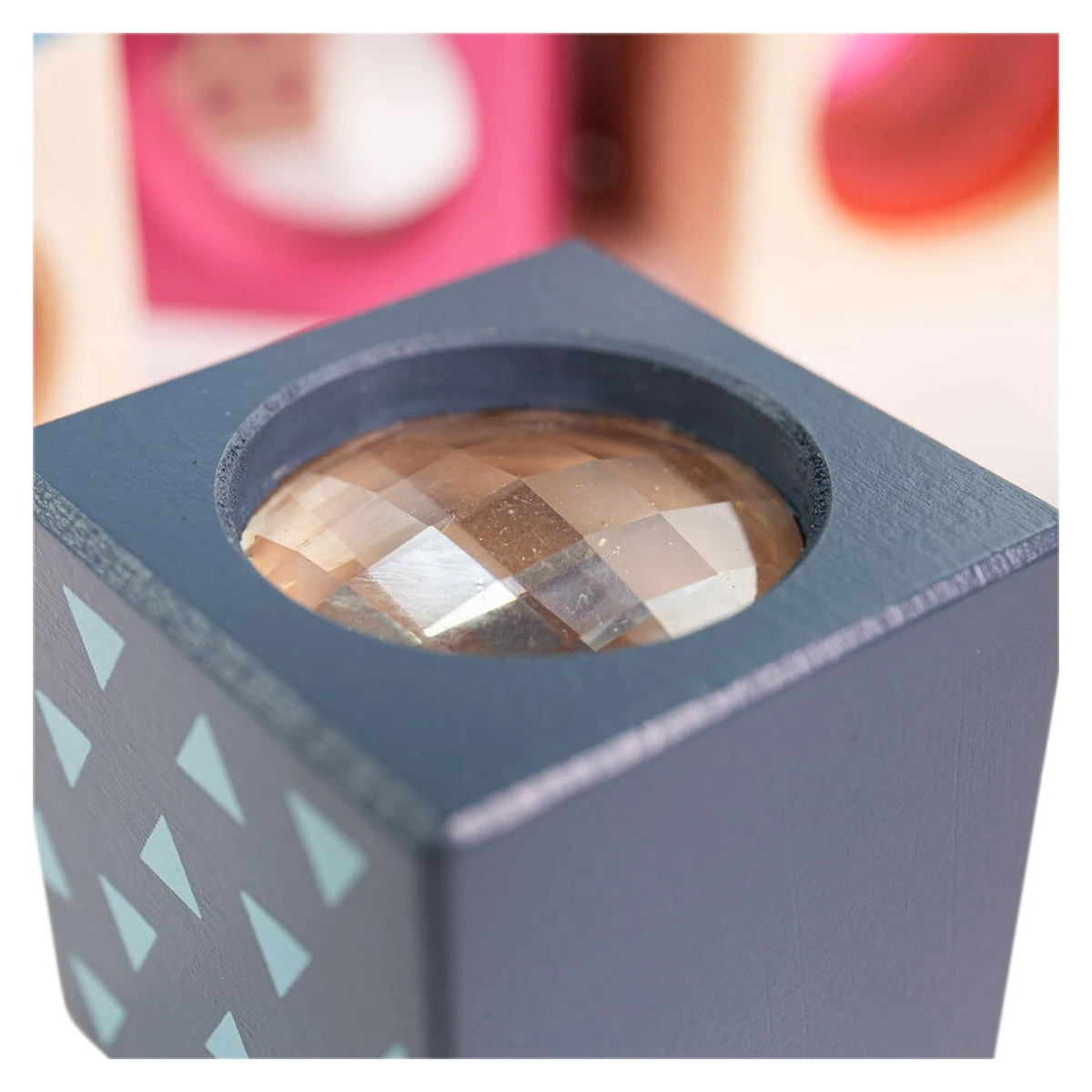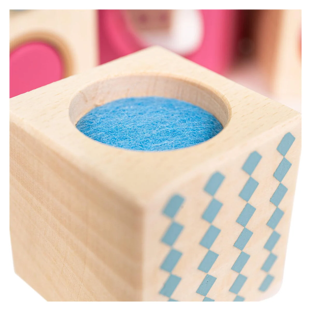 • Aceasta jucarie, cu un design scandinav minimalist si culori pastel delicate, stimuleaza creativitatea si dezvoltarea armonioasa a copilului, oferind in acelasi timp un aspect estetic placut