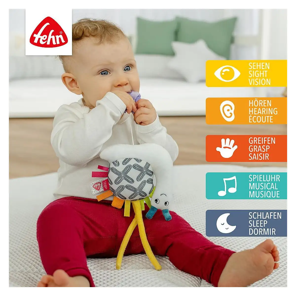 - Usor de atasat la patut sau carucior: Cu un sistem de prindere simplu si sigur, jucaria se poate atasa cu usurinta la patutul sau caruciorul copilului, oferindu-i distractie si confort in orice moment al zilei.