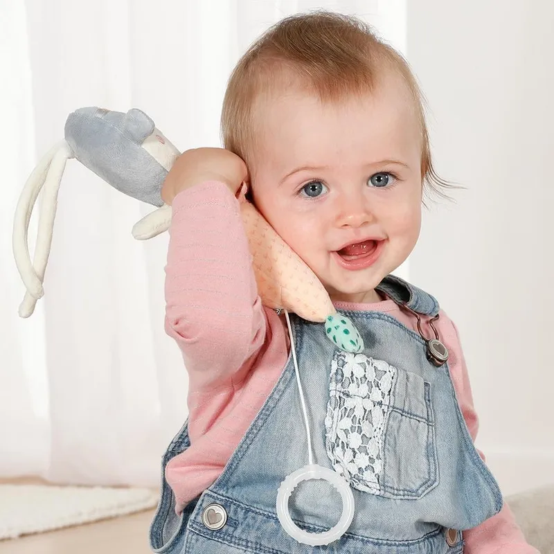 - Usor de atasat la patut sau carucior: Cu un sistem de prindere simplu si sigur, jucaria se poate atasa cu usurinta la patutul sau caruciorul copilului, oferindu-i distractie si confort in orice moment al zilei.