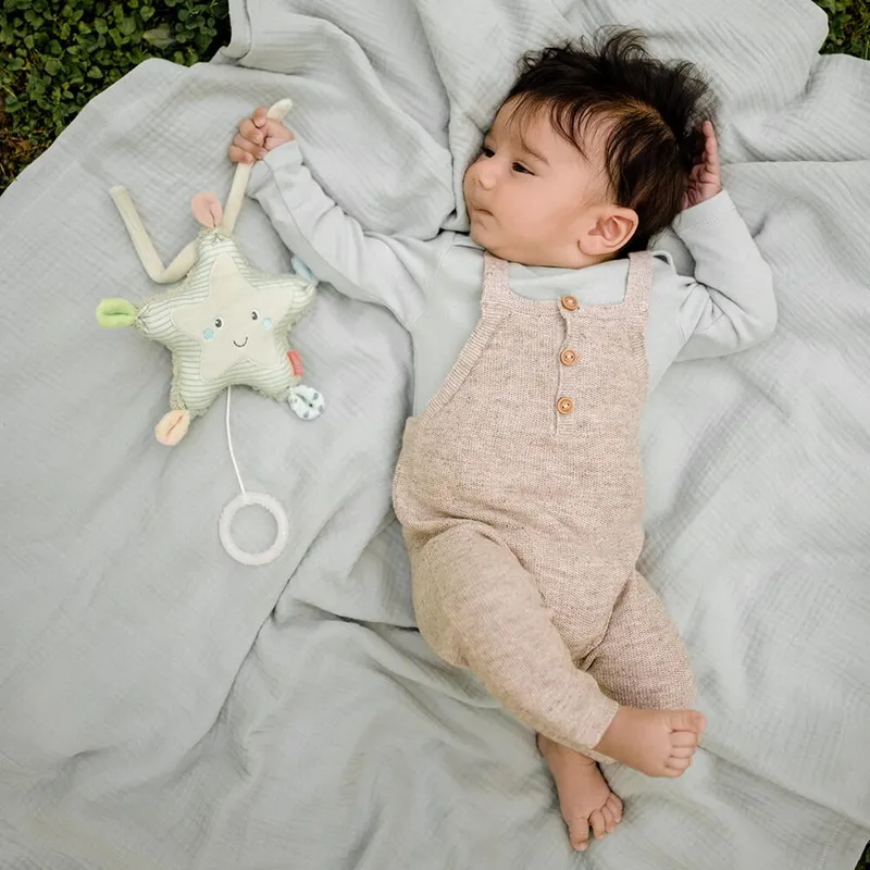 - Usor de atasat la patut sau carucior: Cu un sistem de prindere simplu si sigur, jucaria se poate atasa cu usurinta la patutul sau caruciorul copilului, oferindu-i distractie si confort in orice moment al zilei.