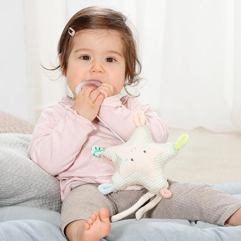 - Mecanism muzical cu melodie de leagan: Jucaria dispune de un mecanism muzical care, atunci cand este declansat, va reda timp de 1.5-2 minute melodia de leagan "Weißt du wieviel Sternlein stehen". Aceasta melodie blanda si relaxanta este perfecta pentru a ajuta copiii sa adoarma si sa se simta in siguranta.