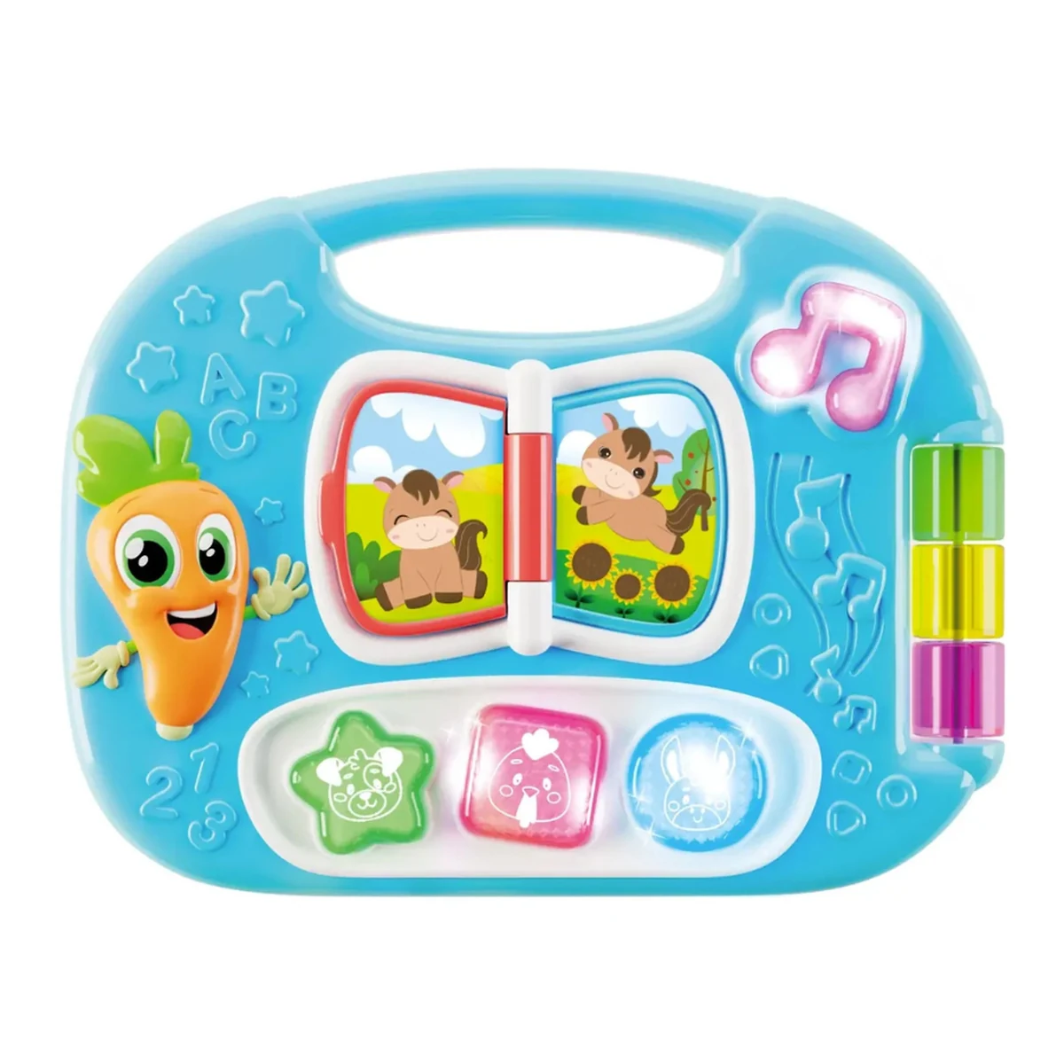 - Cu butoane, lumini si sunete interactive, copilul isi imbunatateste coordonarea mana-ochi, abilitatile de limbaj si perceptia senzoriala