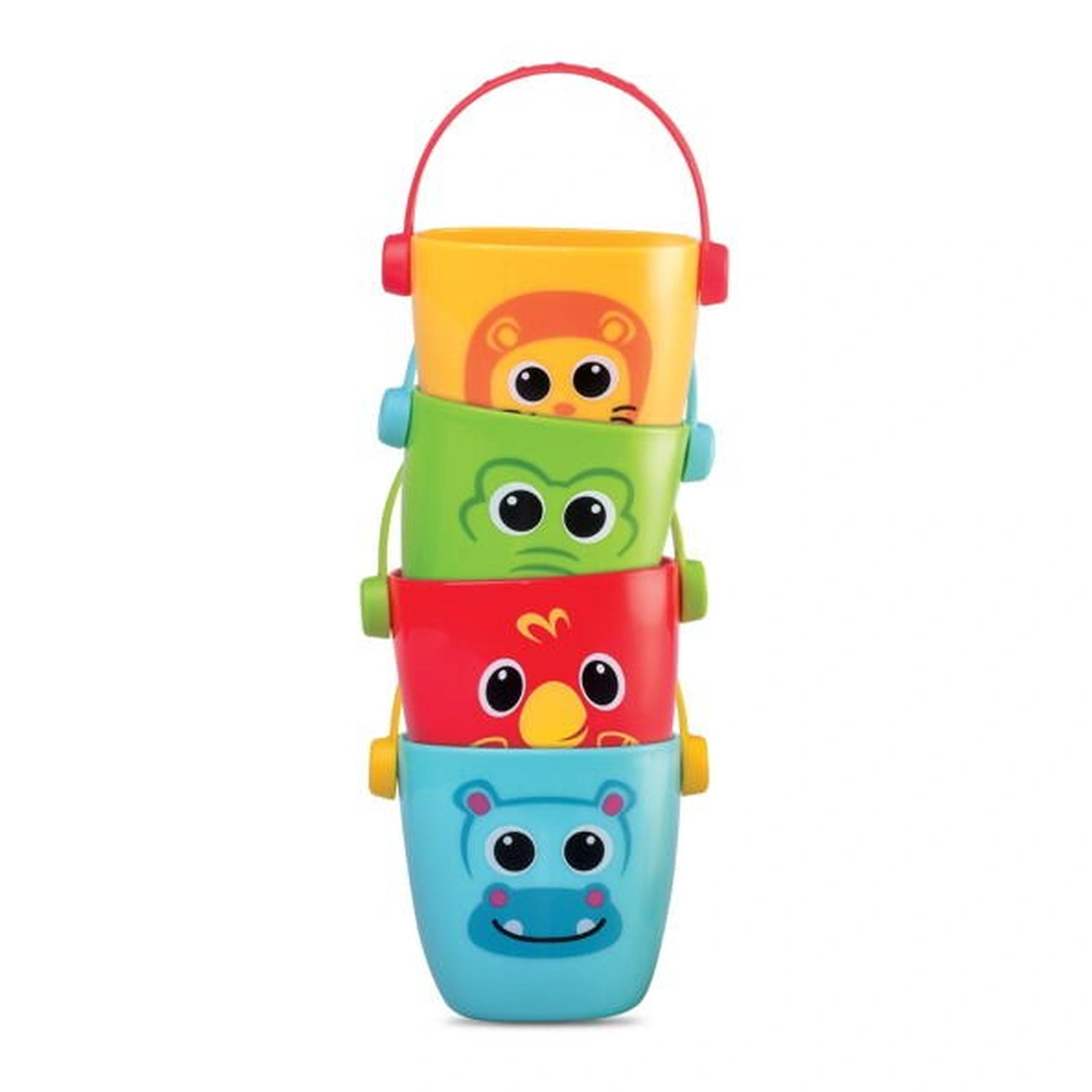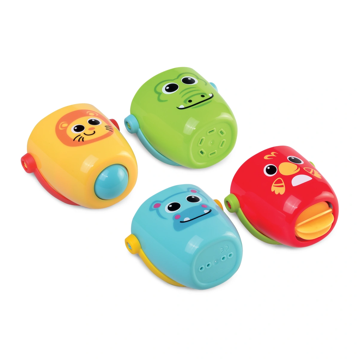 fiecare galetusa prezinta un animal simpatic precum leu, crocodil, pasare sau hipopotam, oferind copilului personaje prietenoase pentru sesiuni de joaca