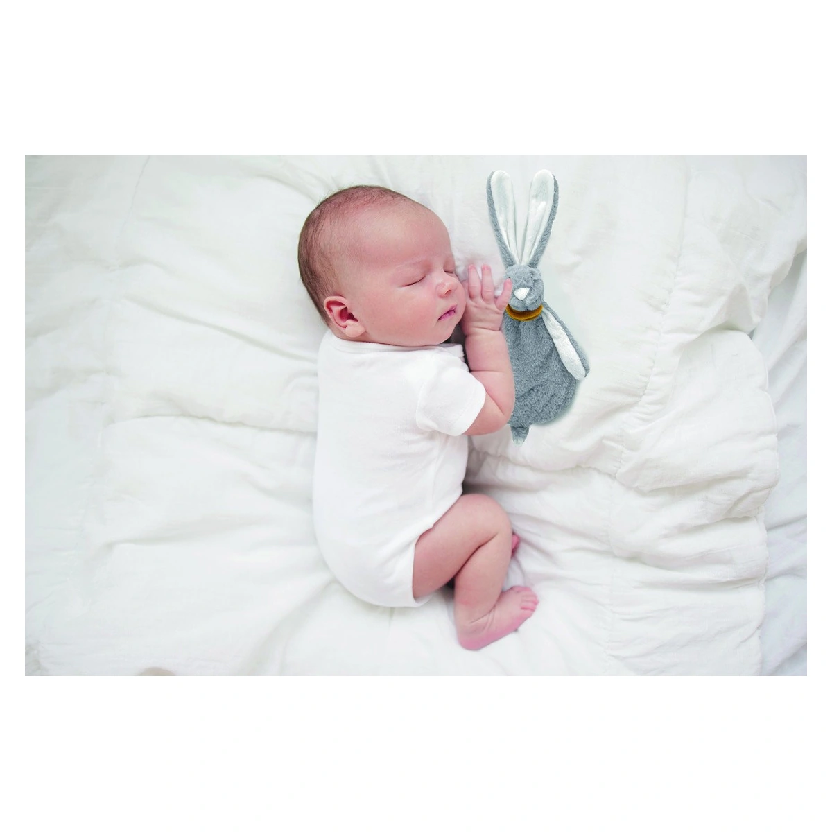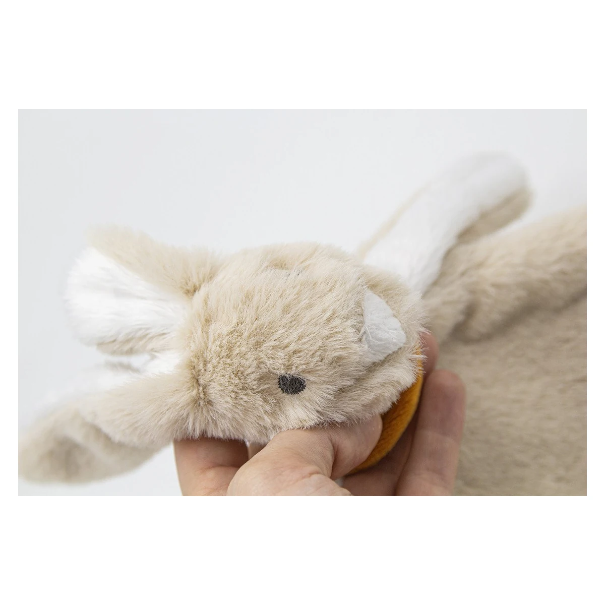 - S-a observat ca bebelusii dorm mai usor cu un partener de somn. Iepurasul de plus, pe care il pot folosi ca insotitor de somn, este atent cu pielea bebelusului tau datorita materialului plusat.