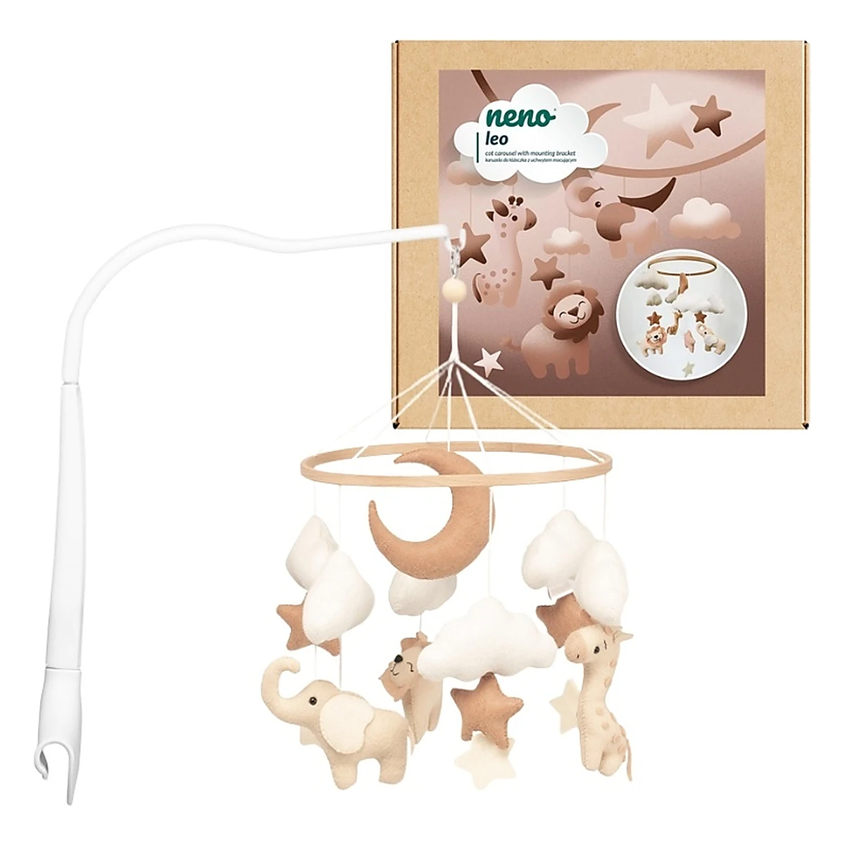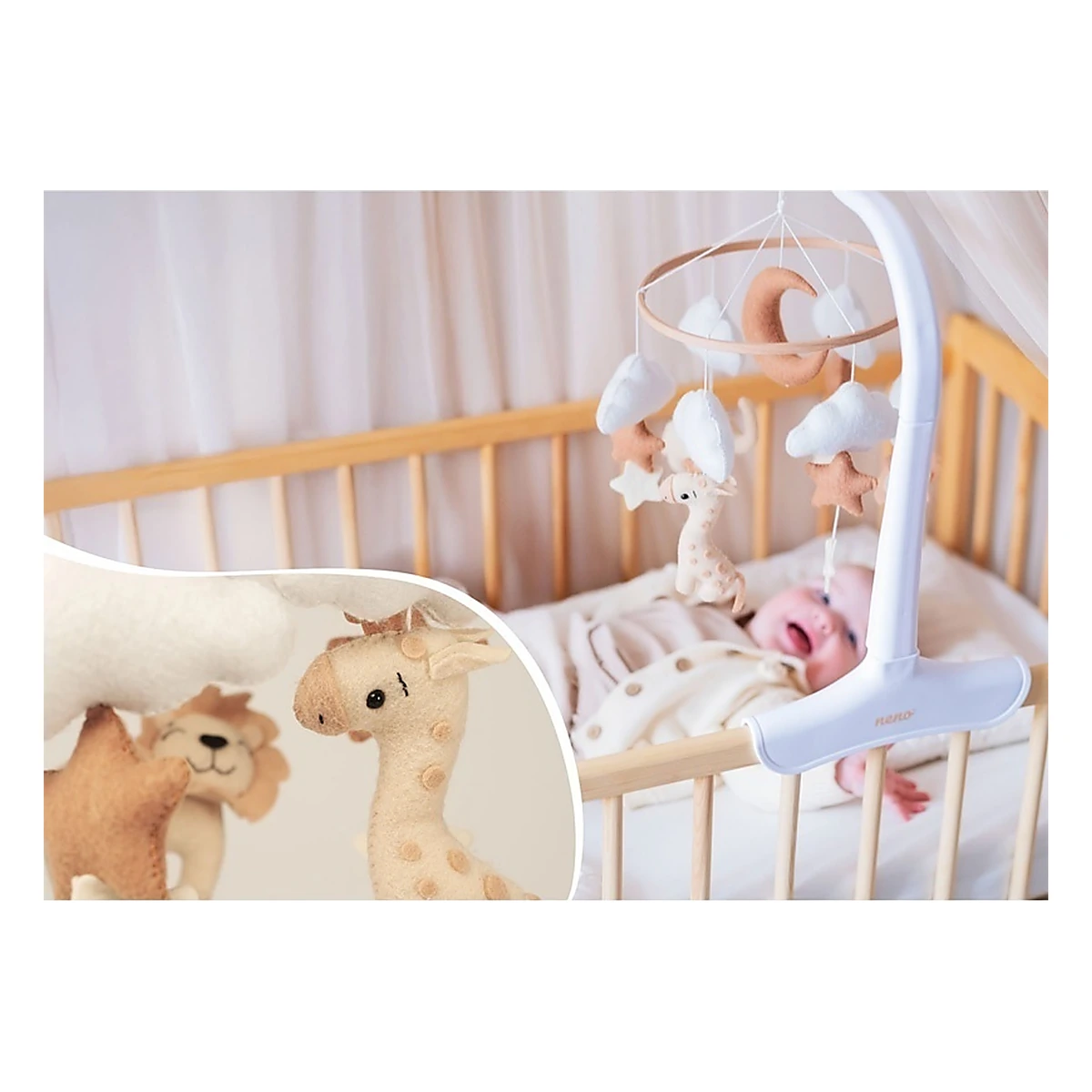 Caruselul Neno Leo este un accesoriu deosebit pentru camera bebelușului. Culorile naturale și formele blânde se integrează armonios în orice decor, adăugând un strop de magie și confort atât pentru copil, cât și pentru părinți.