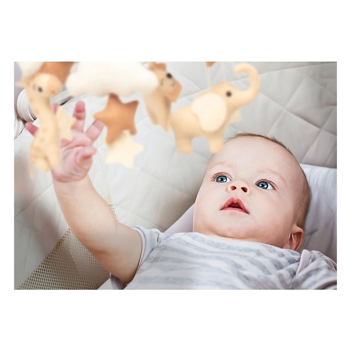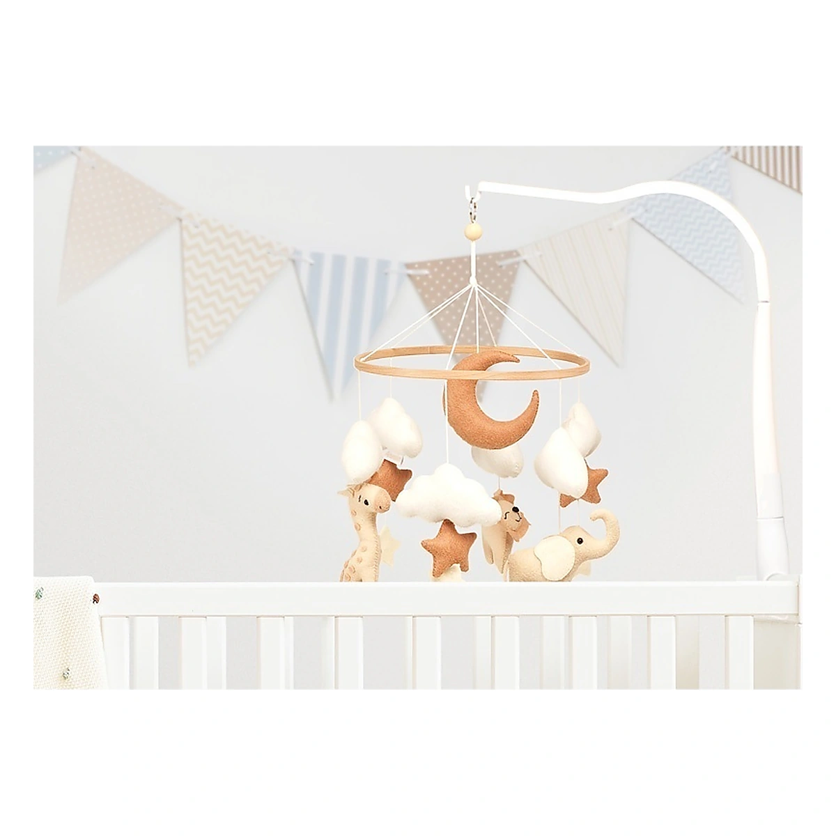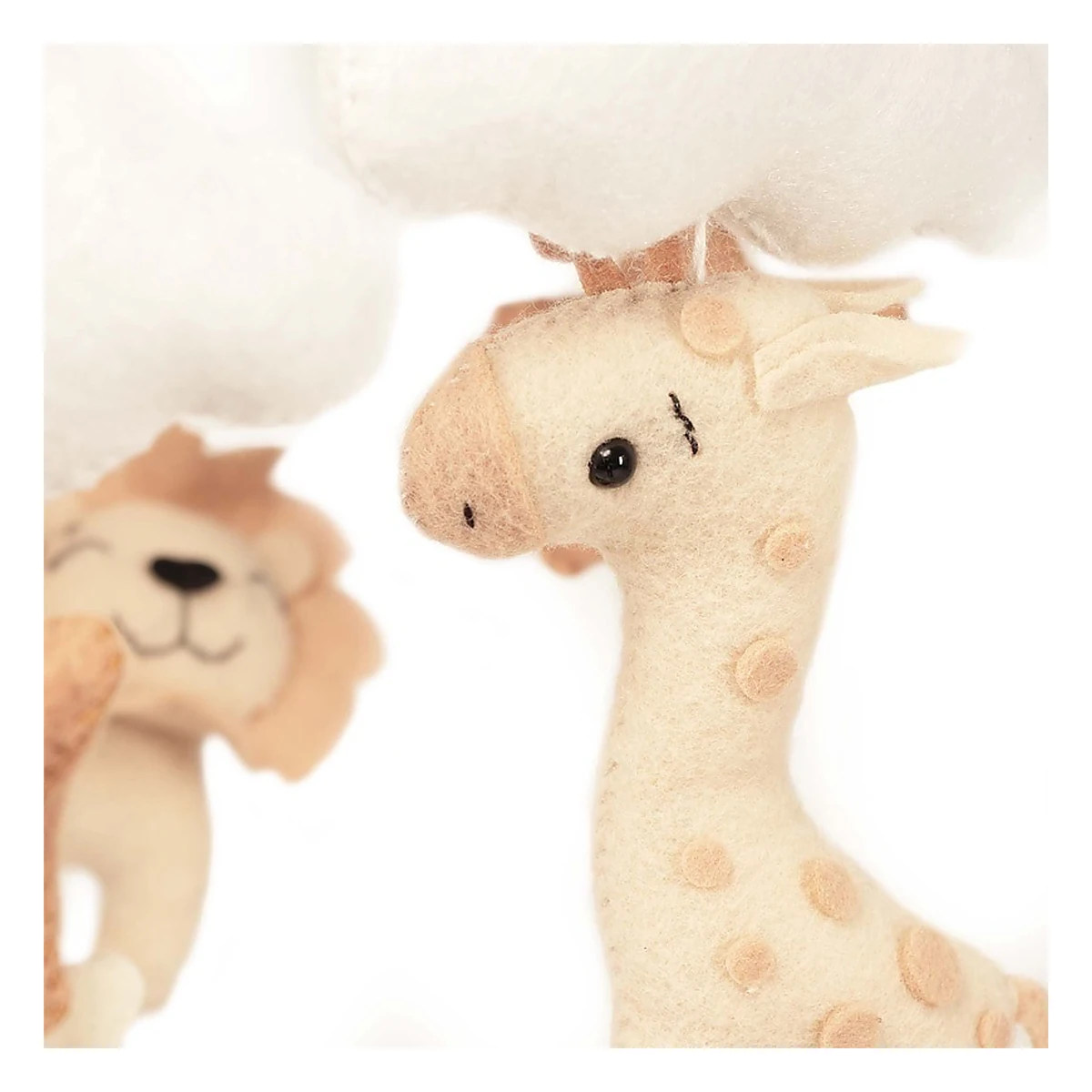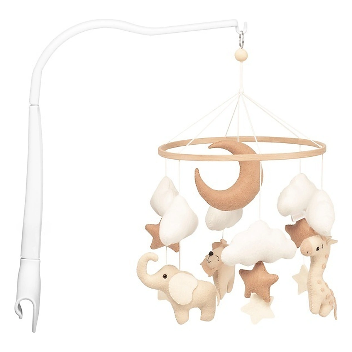 Mascotele în formă de animalute, stelute si luna sunt cusute manual din fetru delicat și umplutură moale. Aspectul lor plăcut și mișcarea subtilă de legănare creează o senzație de liniște și siguranță, ideală pentru momentele de relaxare și somn.