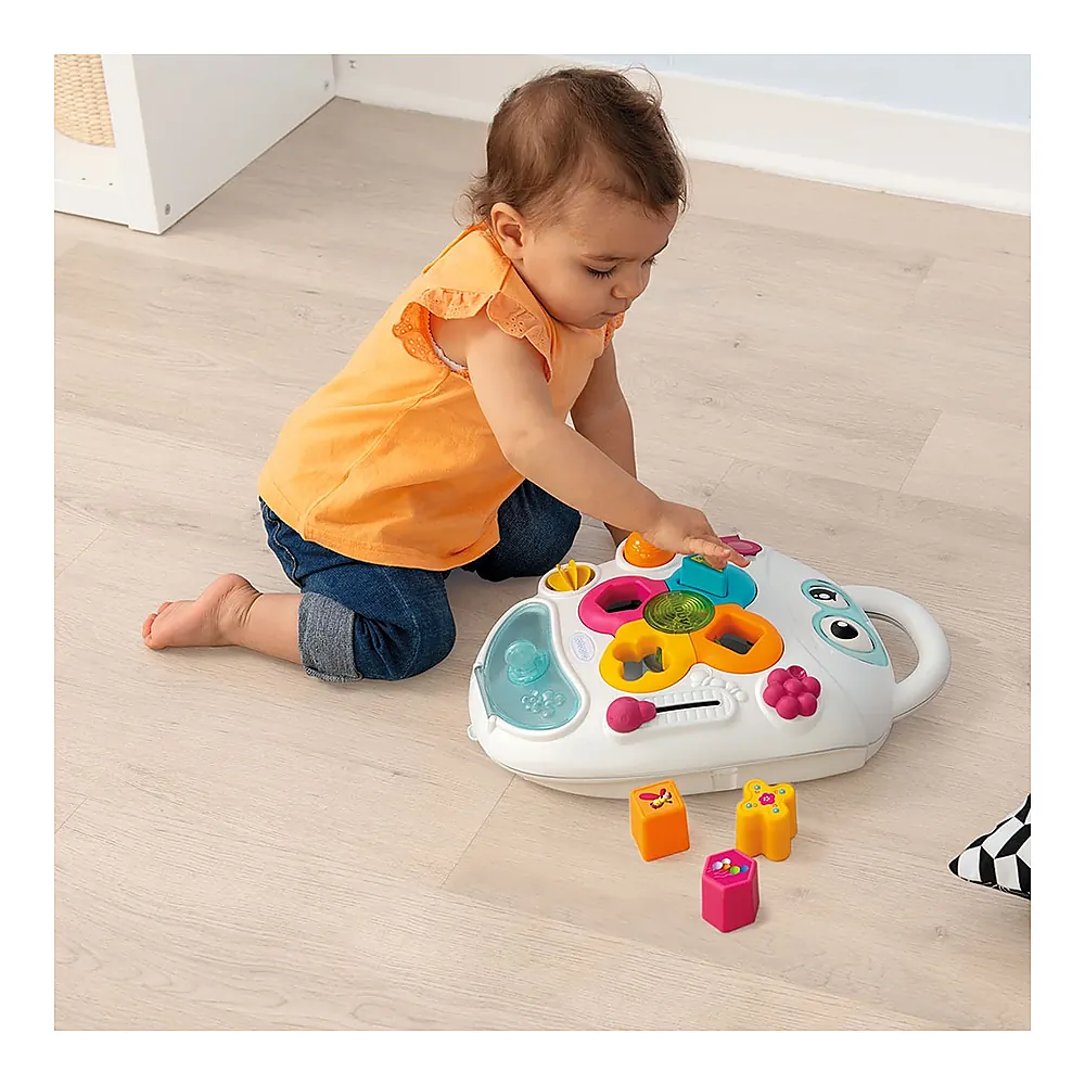 - Acesta va reda un sunet placut, daca copilul va aseza cuburile in jucaria formei, ajutandu-l sa distinga culorile si formele intr-un mod interactiv