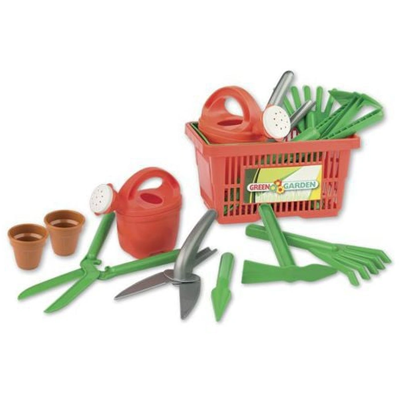 Setul include 1 buc. stropitoare, 1 buc. foarfece de gradina, 1 buc. grebla, 2 buc. ghivece de flori si altele.
