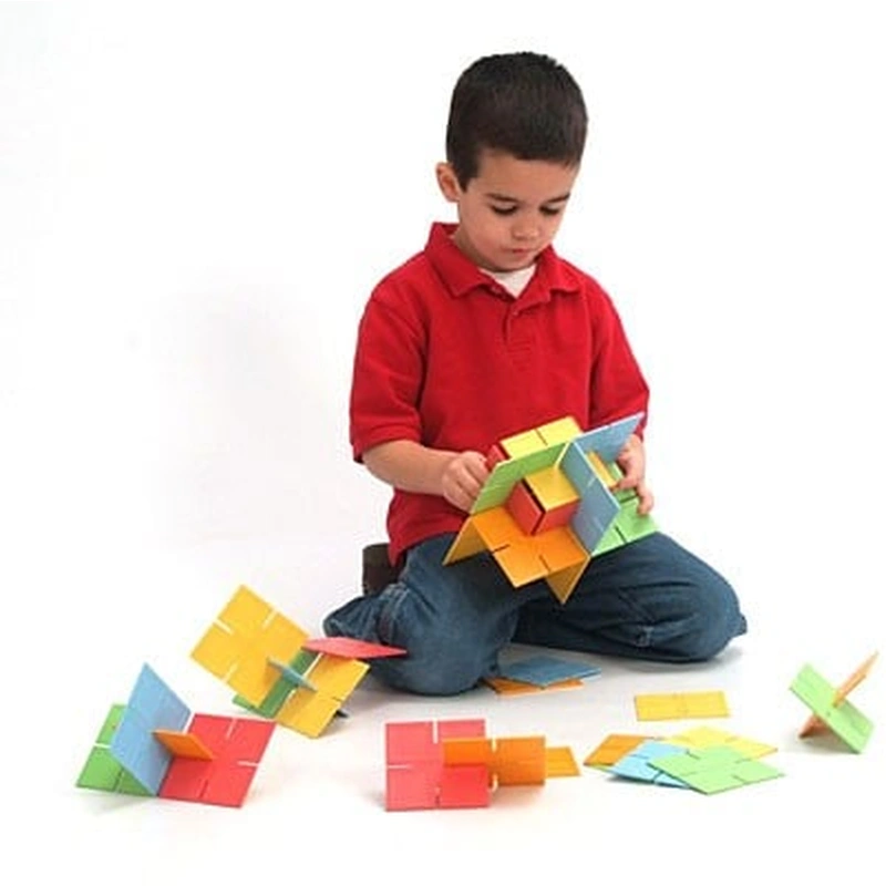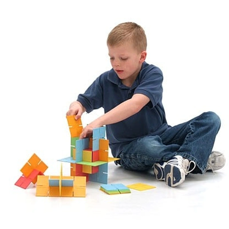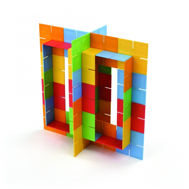 Blocurile clasice de constructii permit ca fantele de pe fiecare patrat sa se interconecteze pentru a crea un numar nelimitat de structuri tridimensionale.