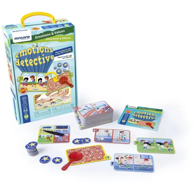 Prezentat ca un joc de detectiv, acesta imbunatateste expresia afectiunii și ofera distractie copiilor in timp ce invata.