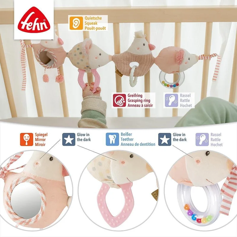 Cu o combinatie de texturi, sunete si elemente tactile, jucaria pentru carucior „Taramul viselor” devine rapid preferata copilului, sprijinind dezvoltarea sa jucausa si transformand fiecare plimbare intr-o aventura plina de descoperiri