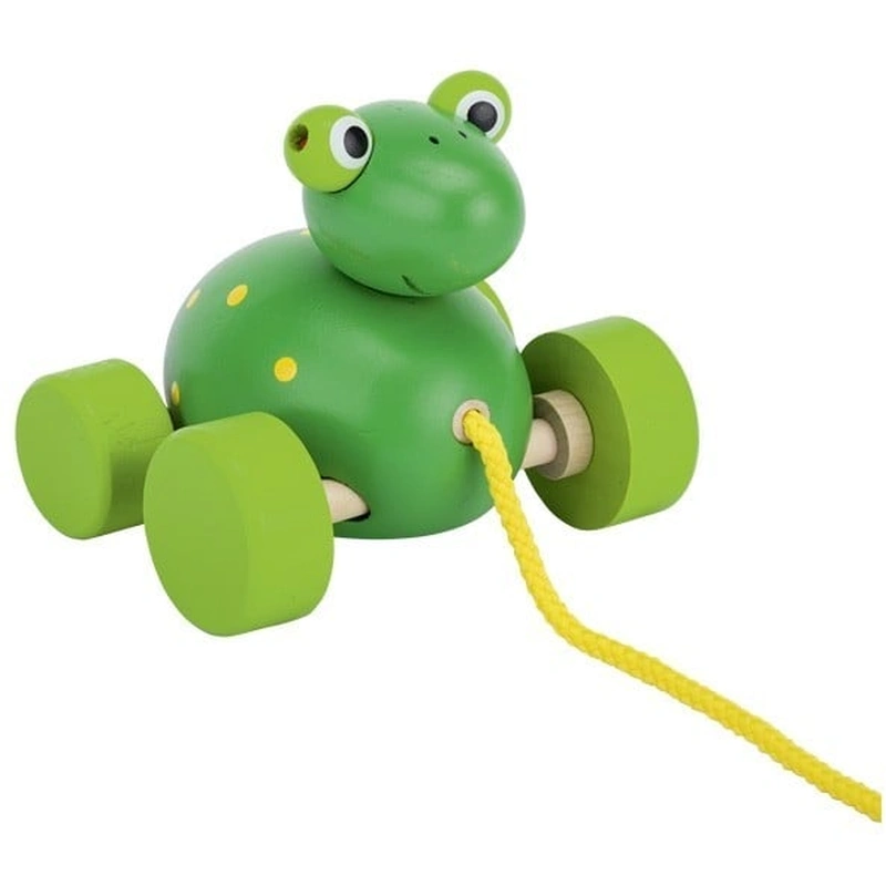 Broscuta din lemn tractabila de culoare verde.Jucarie potrivita pentru copiii de peste un an putand fi trasa in toate aventurile copilului.