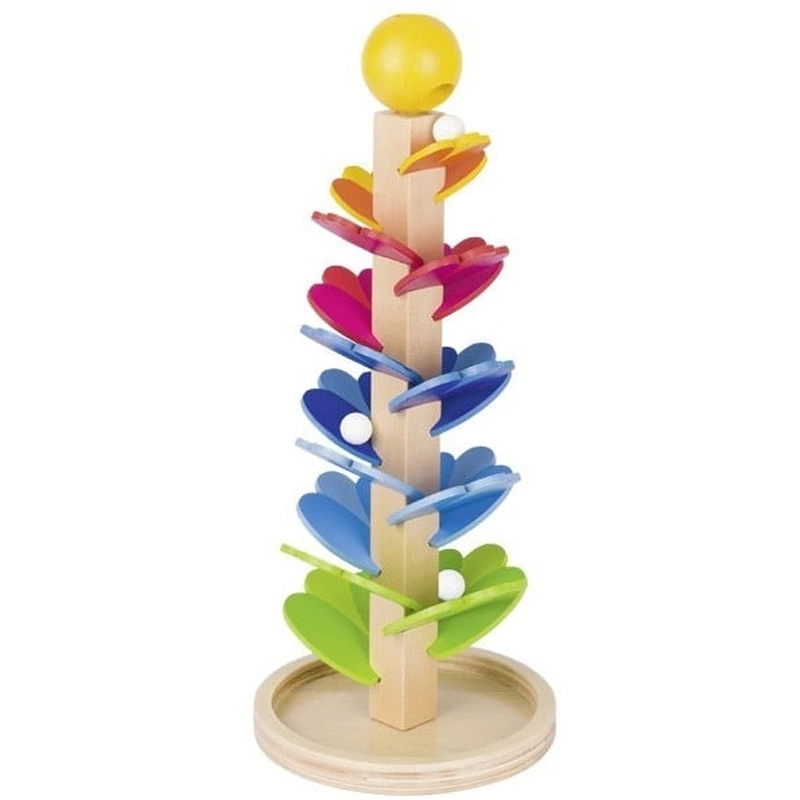 Priveste cele 3 bile cum "se rostogolesc" pe rampele din interiorul pagodei si asculta sunetele produse.