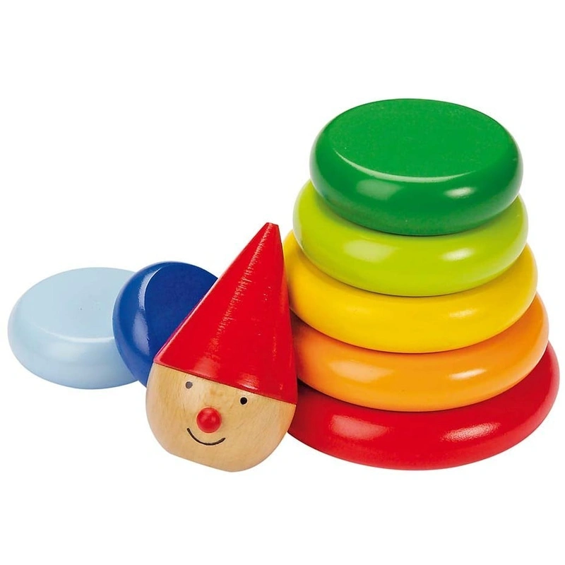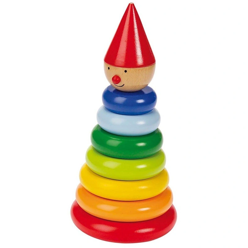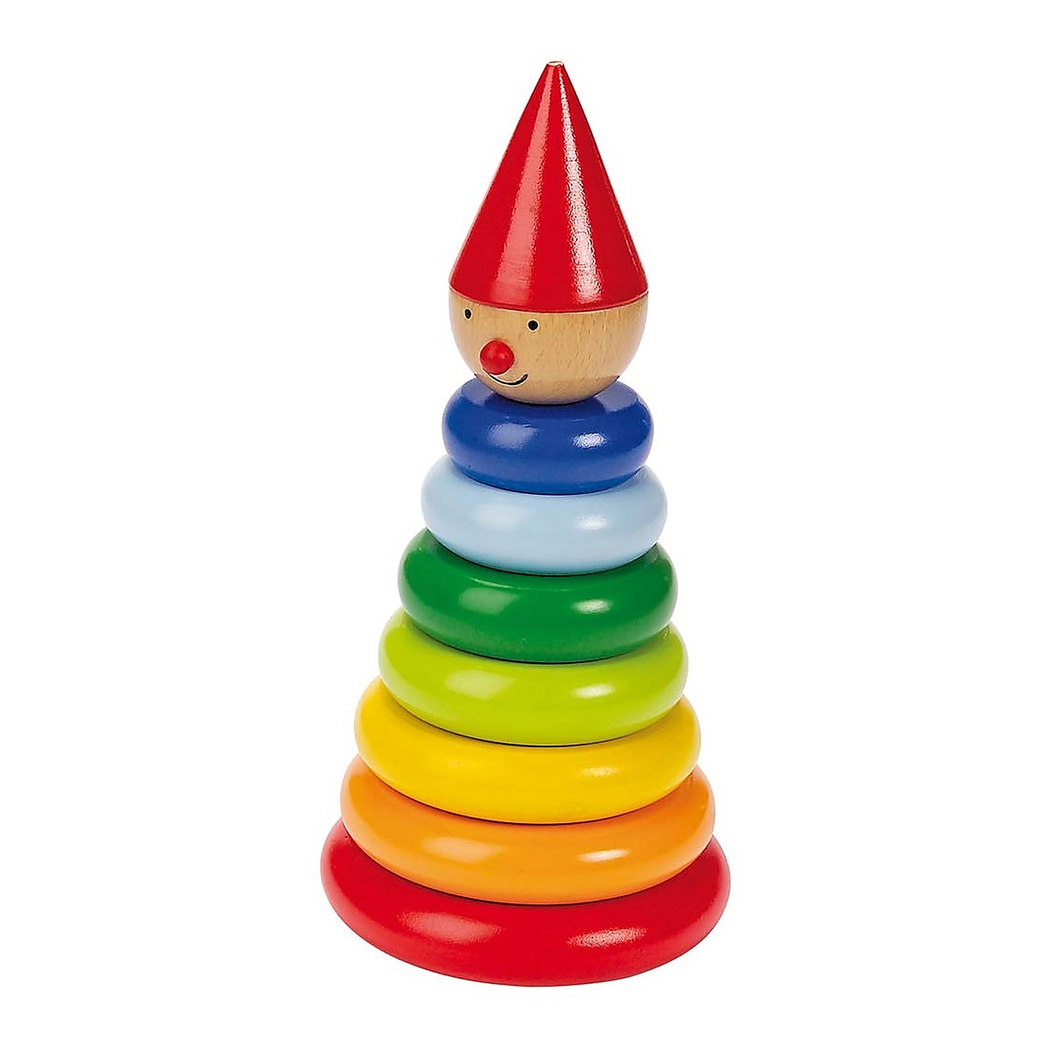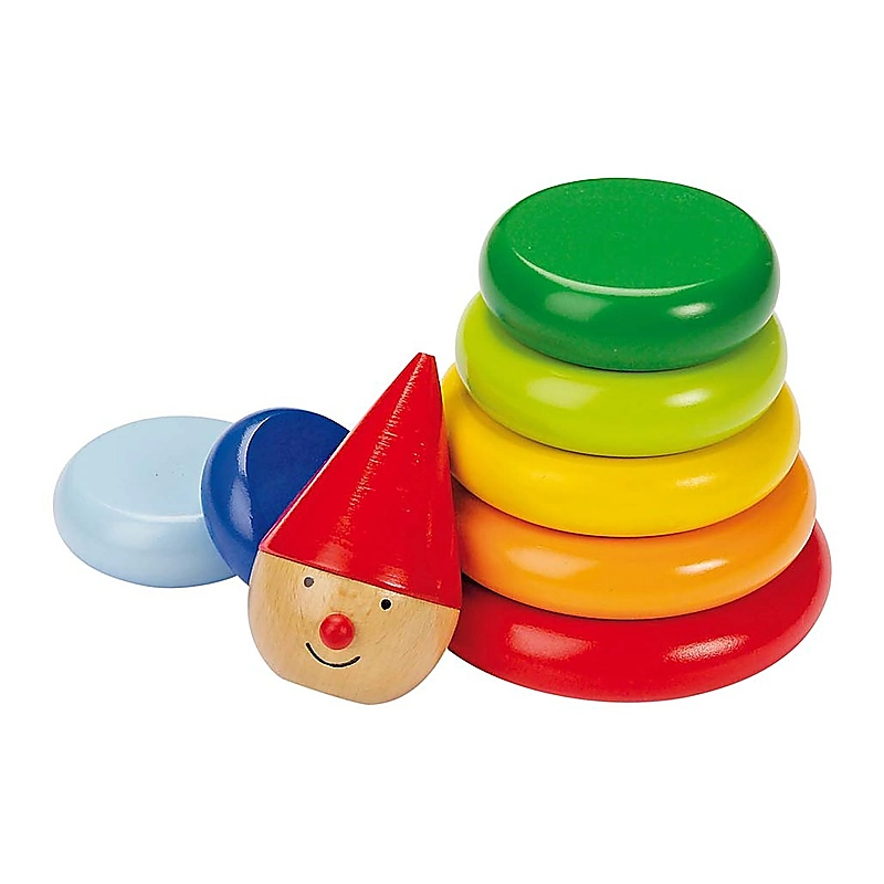 Piramida vesela din lemn ofera un mod distractiv de a invata formele, culorile, de a percepe cantitatile si relatiile de marime.Toate culorile curcubeului sunt reprezentate de cele 7 inele groase si usor de apucat..