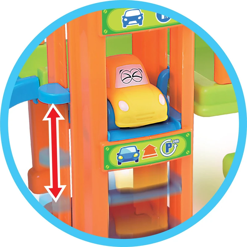 • perfect pentru jocuri creative, acest garaj incurajeaza dezvoltarea abilitatilor motorii fine si a coordonarii mana-ochi, oferind in acelasi timp ore intregi de distractie