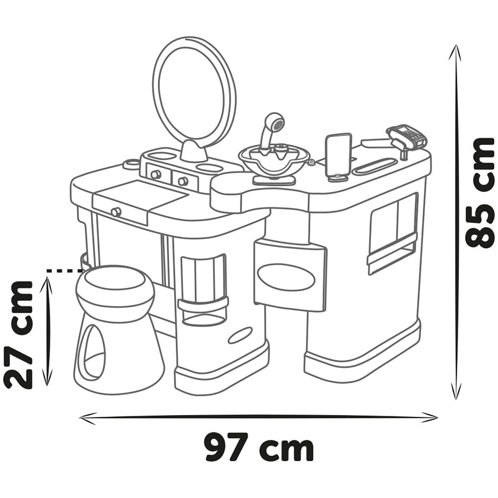 - Zona de spalare are chiuveta cu dus, papusile preferate pot fi rasfatate aici