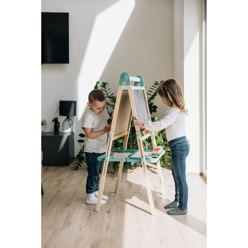 Transforma timpul de joaca intr-o experienta educativa si plina de creativitate cu Free2Play Duo Play – Tabla din lemn dubla, cu accesorii incluse!