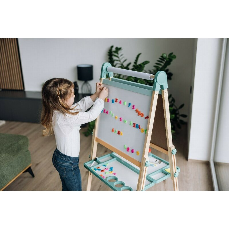 Aceasta tabla multifunctionala este un instrument ideal pentru copii curiosi si creativi, care vor sa invete prin joc. Cu doua fete de lucru – una pentru desen cu creta si cealalta pentru scris cu markerul sau pentru joaca cu litere si cifre magnetice, Duo Play ofera ore intregi de distractie educativa.