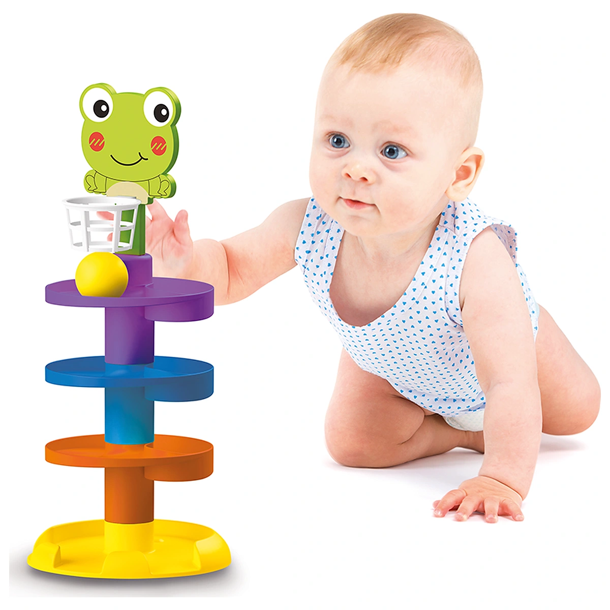 Turnuletul cu biluta este o jucarie perfecta pentru manutele mici. Da drumul la biluta prin cosul de baschet si incepe distractia.