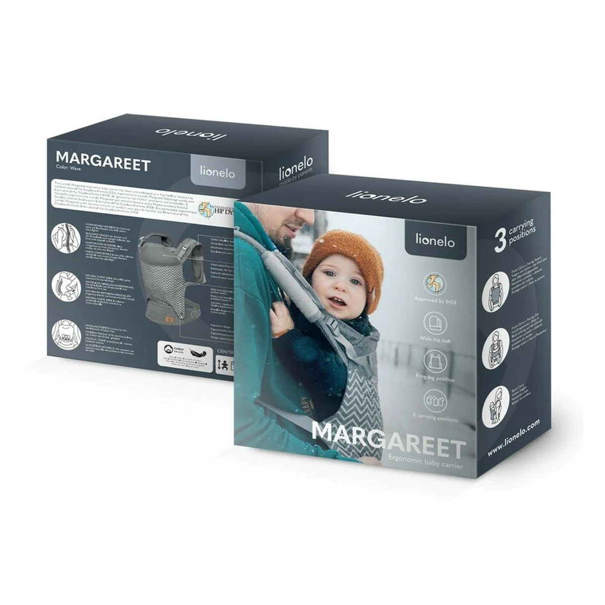 Marsupiu ergonomic Margareet, Cu 3 pozitii de transport, Cu gluga, Pana la 20 Kg, Aprobat de Institutul International de Displazie de Sold, Conform cu standardul european de securitate CEN T