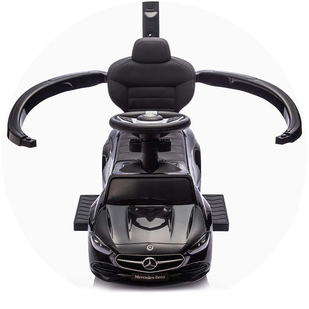 - Masinuta se poate pune in miscare de catre copil cu ajutorul picioarelor sau de catre parinte cu ajutorul manerului