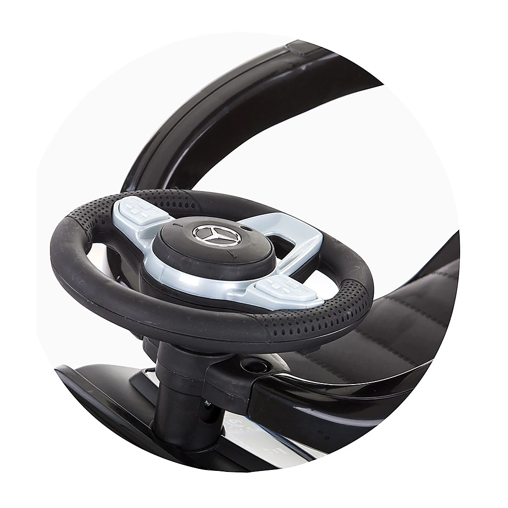 • Masinuta se poate pune in miscare de catre copil cu ajutorul picioarelor sau de catre parinte cu ajutorul manerului