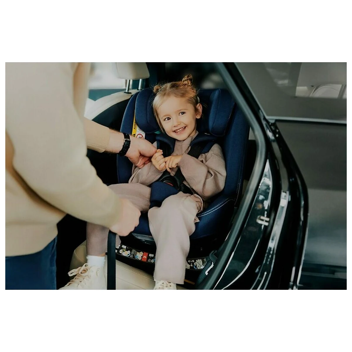 Baza convenabila rotativa EasyTurn la 360 grade permite fixarea precisa a copilului si permite scoaterea rapida si confortabila a micutului. Parintele poate roti baza spre usa pentru acces usor fara a-si suprasolicita spatele. Fixarea copilului este, de asemenea, facilitata de mecanismul intern de ajustare a centurilor, care permite strangerea centurilor printr-o singura tragere de mana.
