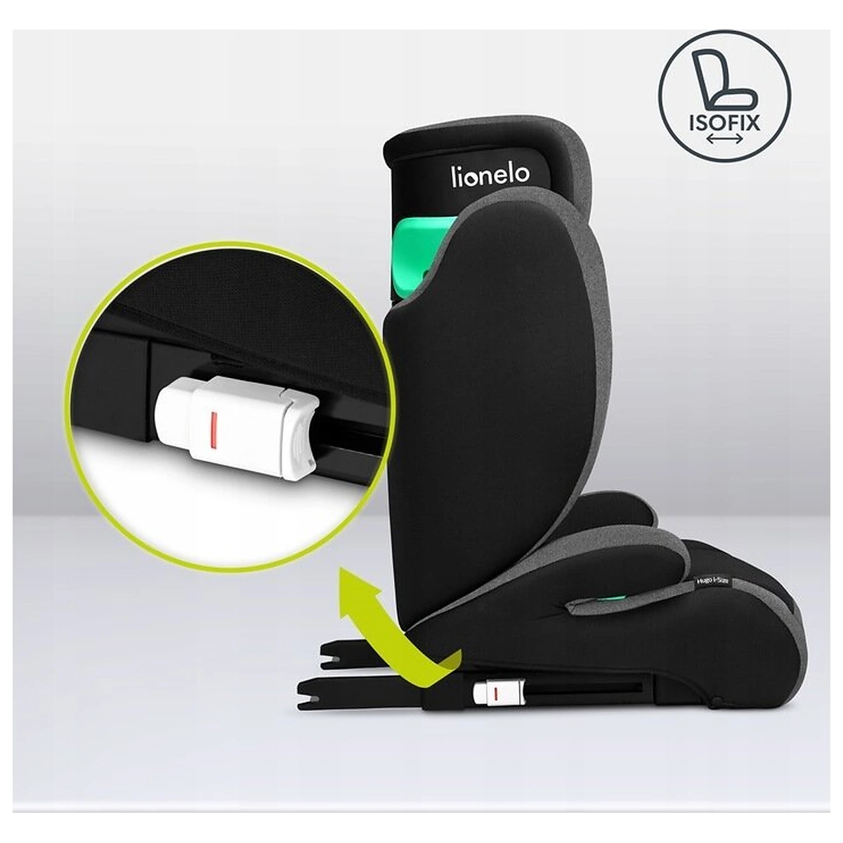 Hugo i-Size este in primul rand un model universal - poate fi montat in orice masina. Pentru atasarea scaunului, putem folosi sistemul ISOFIX sau centurile auto. Instalarea corecta este cruciala in raport cu siguranta scaunului, motiv pentru care sistemul ISOFIX are marcaje speciale care, schimband culoarea - de la rosu la verde - informeaza utilizatorul despre fixarea corecta a copilului. Pe de alta parte, ghidajele verzi situate in tetiera ajuta la fixarea corecta a copilului.