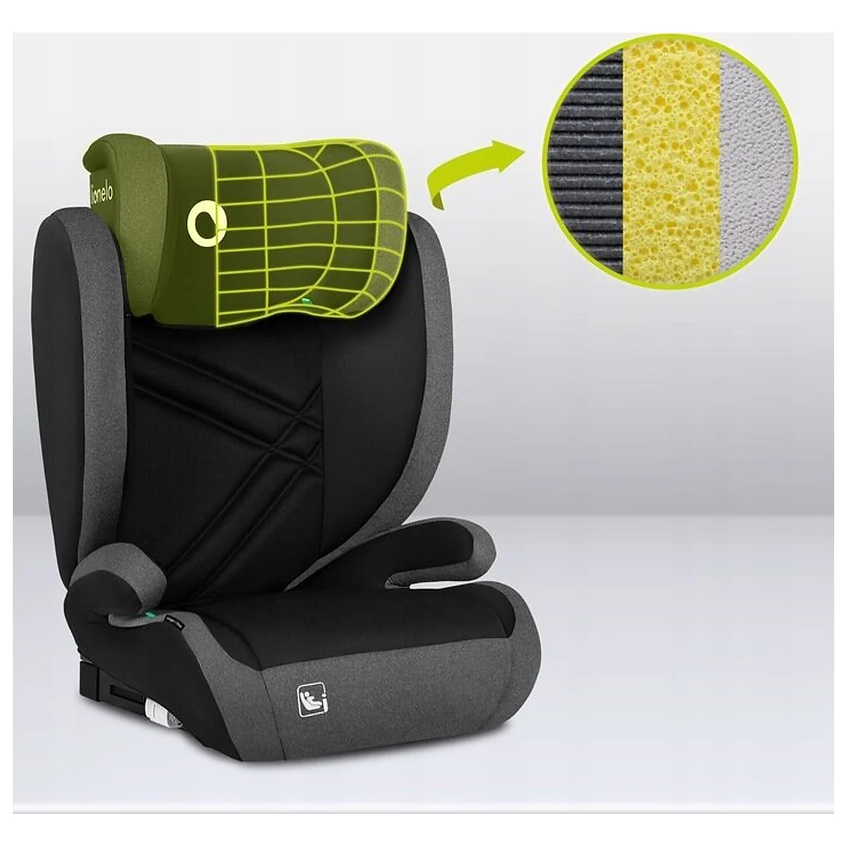 Lionelo Hugo i-Size Black Grey este un scaun auto dedicat grupei de crestere de 100-150 cm, motiv pentru care este perfect pentru copiii cu varste cuprinse intre 4 si 12 ani. Modelul respecta standardul R129, deci indeplineste cele mai stricte cerinte de siguranta. Hugo i-Size este un scaun auto universal care se potriveste oricarei masini - poate fi instalat folosind sistemul ISOFIX si centurile auto, precum si centurile in sine. Tetiera ranforsata din spuma cu memorie si protectia laterala avansata garanteaza cel mai inalt nivel de siguranta.