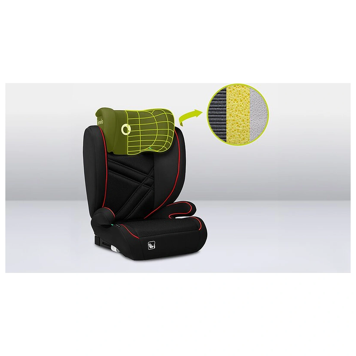 Intregul scaun - sezutul, partile laterale si tetiera - a fost acoperit cu spuma EPE pentru un confort sporit. Cu toate acestea, pentru a satisface nevoile in schimbare ale unui copil in crestere, Hugo i-Size are un scaun lat si confortabil si cotiere ergonomice care mentin in plus centura in pozitia corecta.