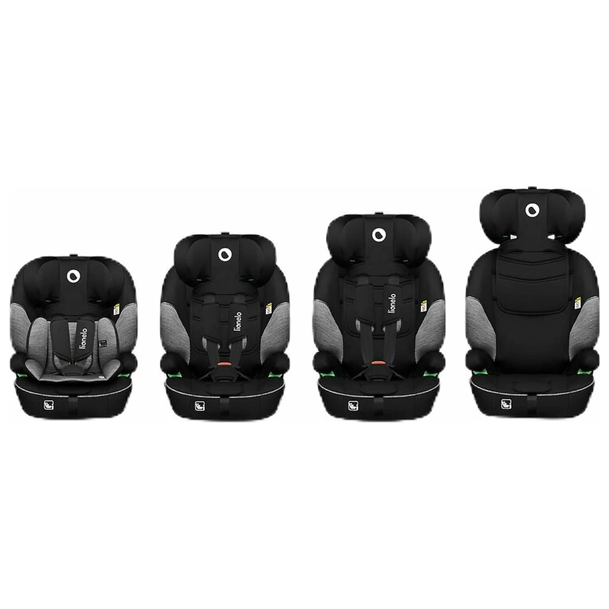 Scaun auto, Lionelo, Levi One i-Size, Universal, Instalare FWF, Cu tetiera reglabila in 10 pozitii, Cu spatar detasabil, 76-150 cm, Conform cu R129, Gri