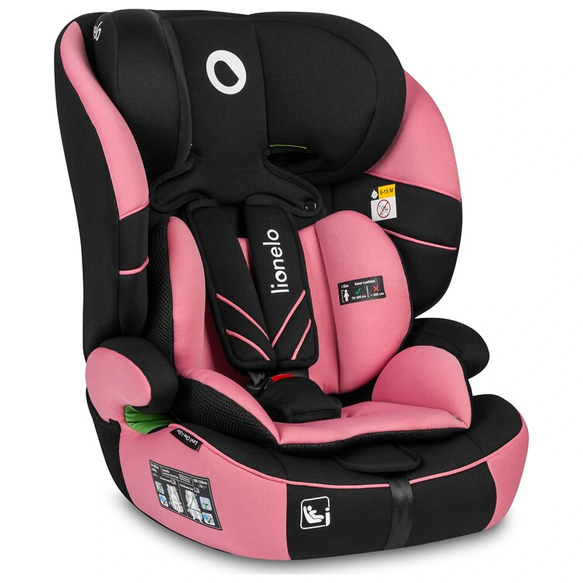 Scaun auto, Lionelo, Levi One i-Size, Universal, Instalare FWF, Cu tetiera reglabila in 10 pozitii, Cu spatar detasabil, 76-150 cm, Conform cu R129, Roz