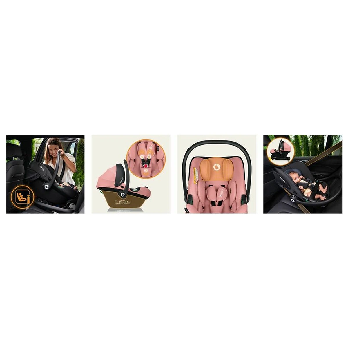 Scaunul este compatibil cu baza ISOFIX, care poate fi achizitionata separat, si cu adaptoarele universale pentru carucioare. Reglarea inaltimii centurilor este integrata cu ajustarea tetierei. Un mecanism special permite strangerea centurilor cu o singura mana. Husa este detasabila si lavabila, facilitand mentinerea curateniei.