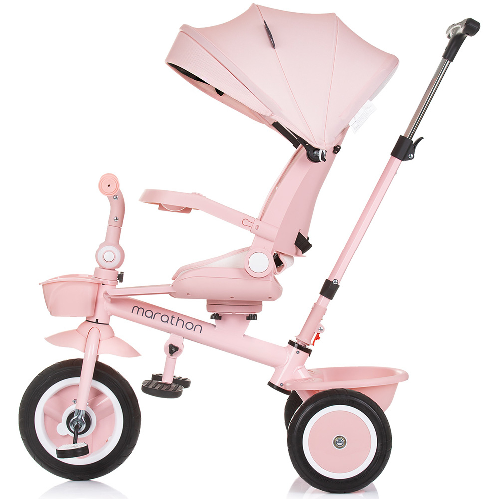 - Tricicleta poate fi pusa in miscare de catre copil cu ajutorul pedalelor sau de catre parinte cu ajutorul manerului de dirijare