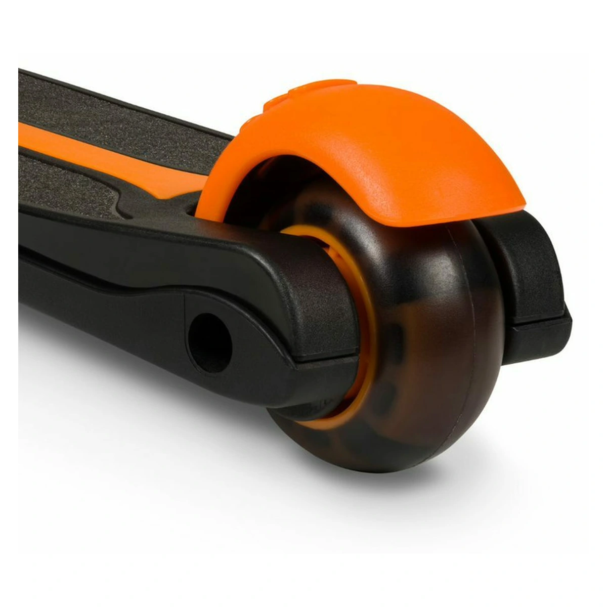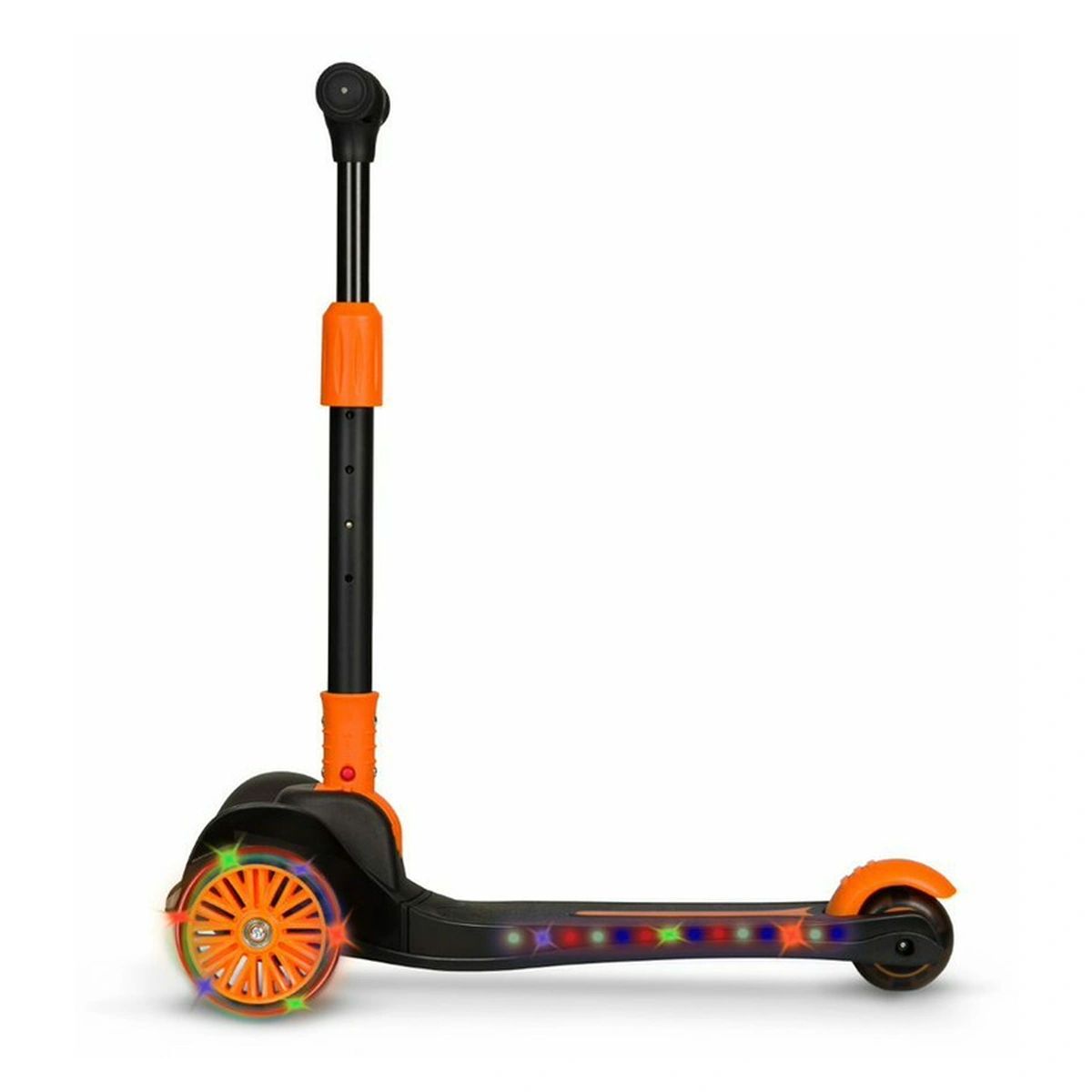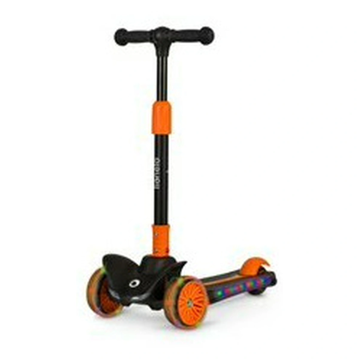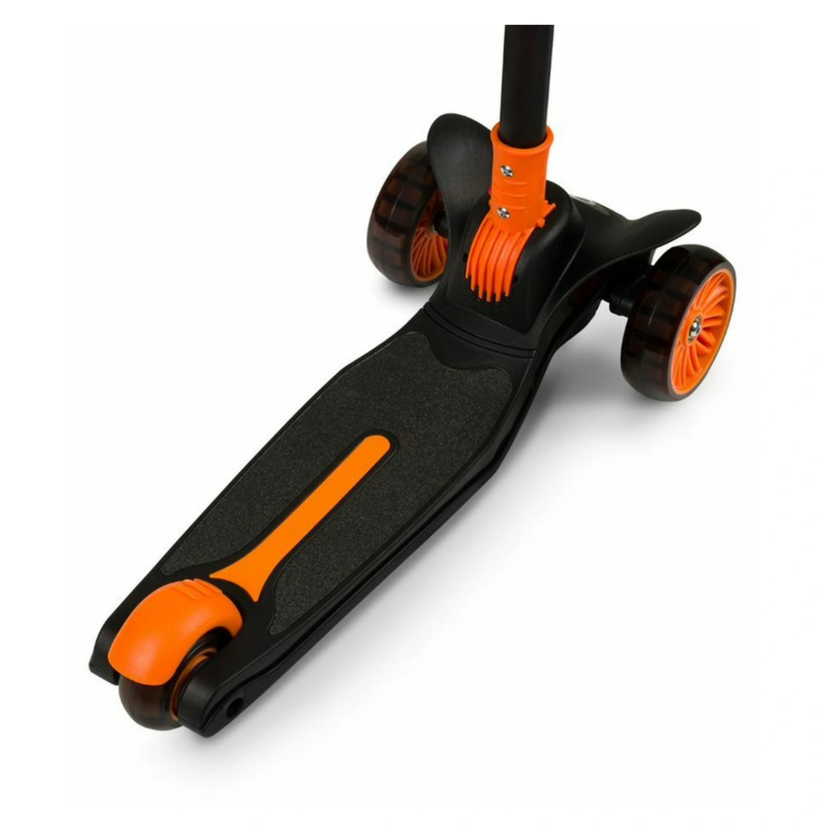 Scuterul nostru Lionelo Timmy Orange Black atrage atentia prin designul sau unic si culoarea caracteristica. Suntem convinsi ca micutului tau ii va placea de la prima vedere, iar acest lucru se datoreaza, printre altele, si luminilor LED alimentate de miscare, care se regasesc in roti si in platforma (o alimentare pe baza de baterii AA este suficienta pentru aproximativ 50 de ore de utilizare).