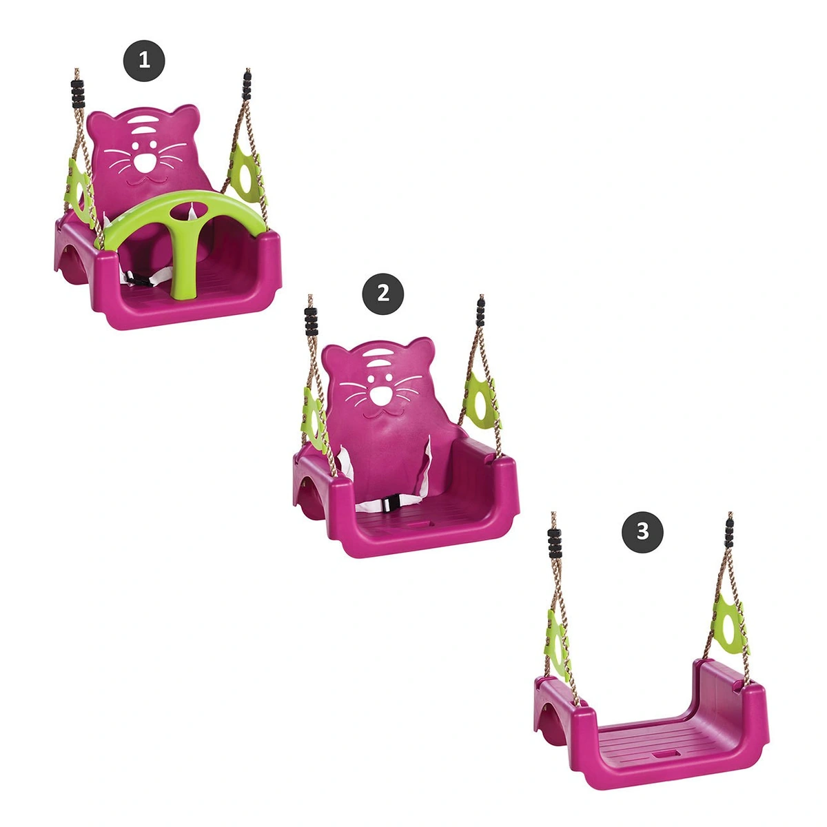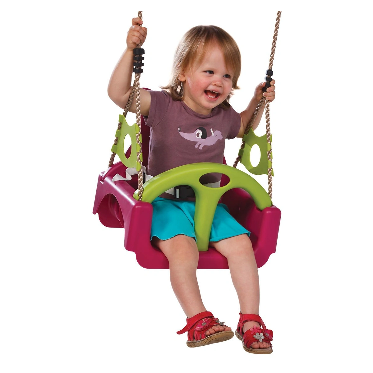 Leaganul este conceput cu un design special, cu finisaje atente si colturi rotunjite. Culorile sunt vii, rezistente la intemperii si UV.