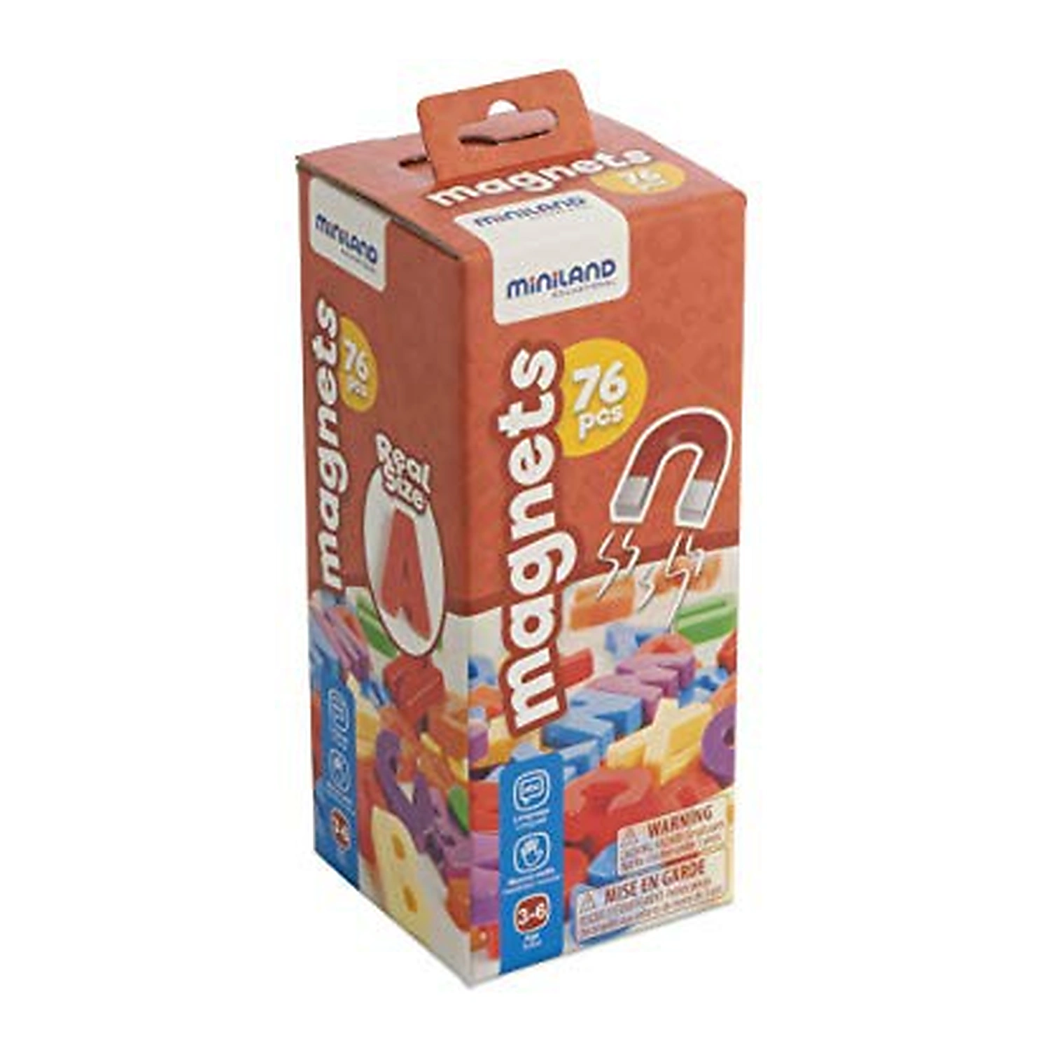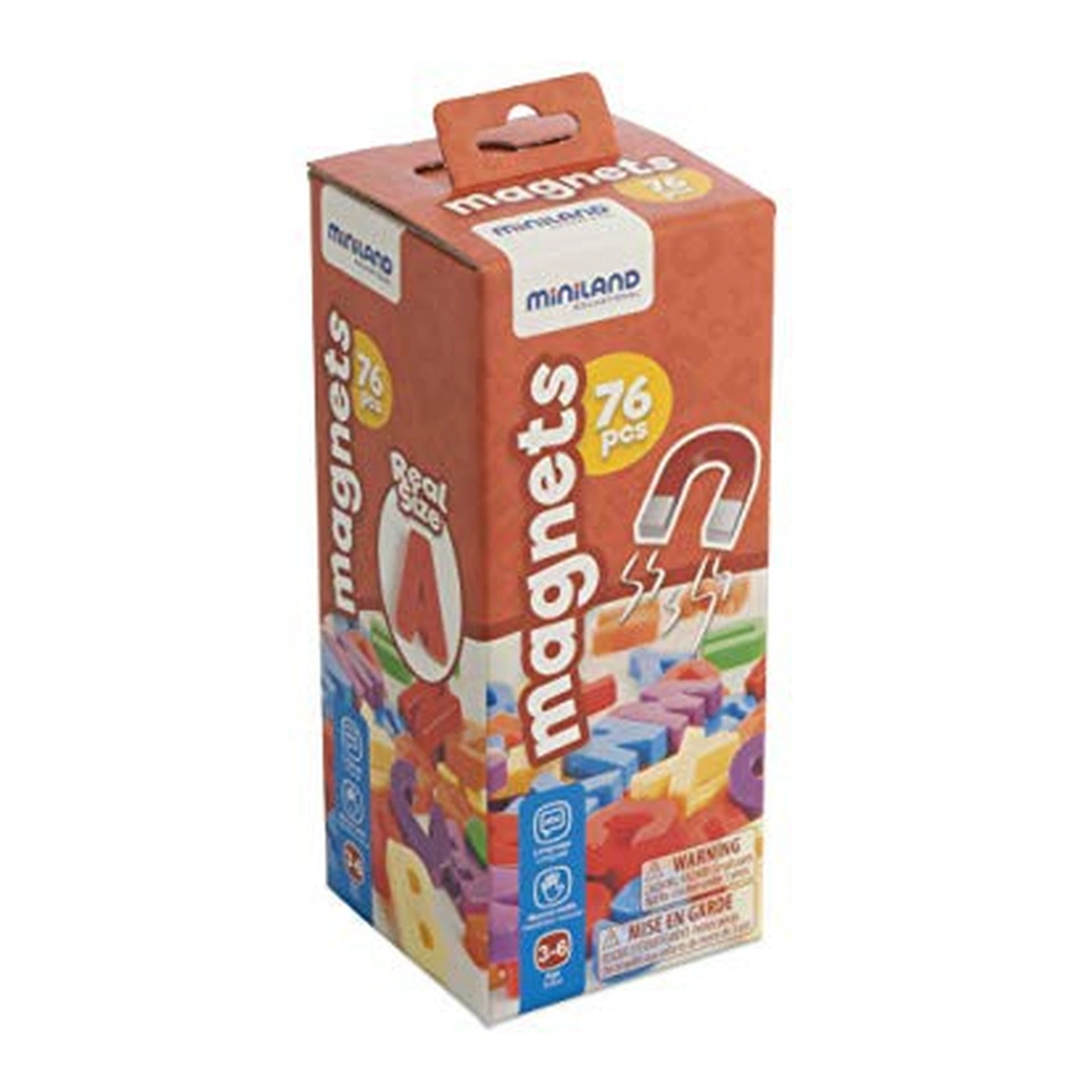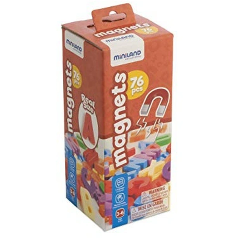 Setul include 66 litere mari de tipar, cu magneti ce pot fi utilizate ca atare sau pe tabla magnetica.