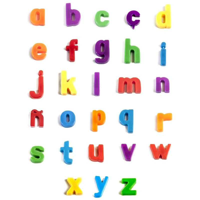 Setul include 66 litere mici de tipar, cu magneti ce pot fi utilizate ca atare sau pe tabla magnetica.